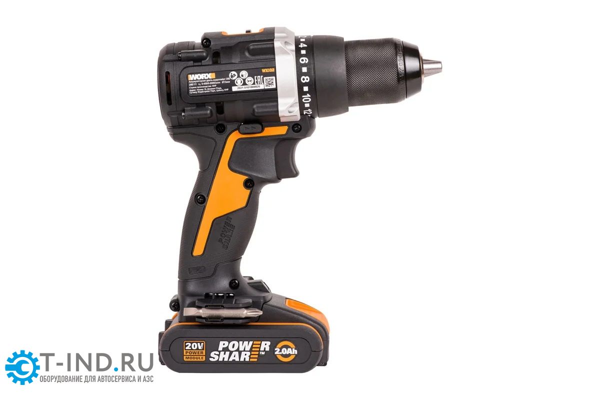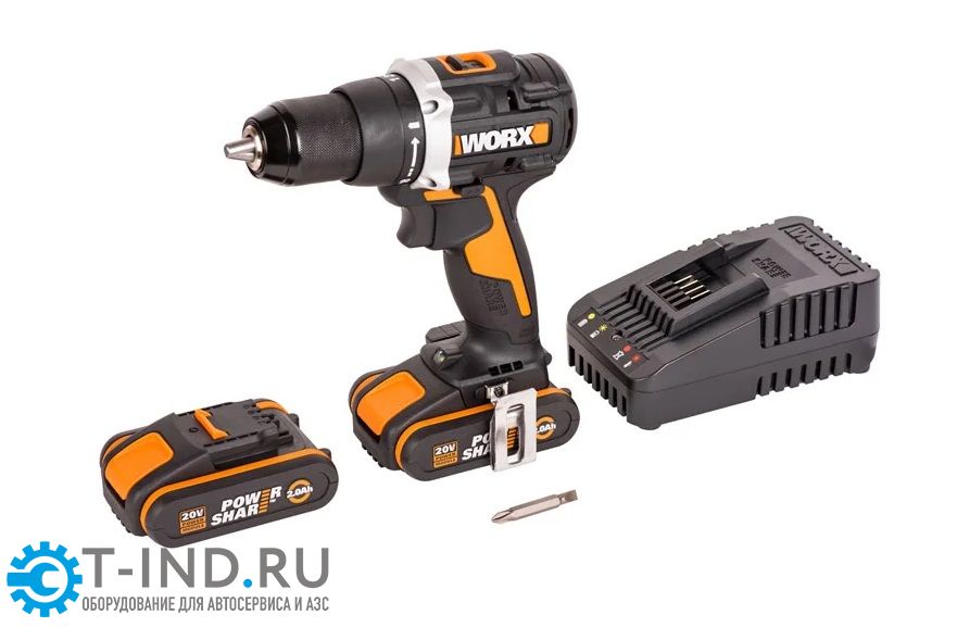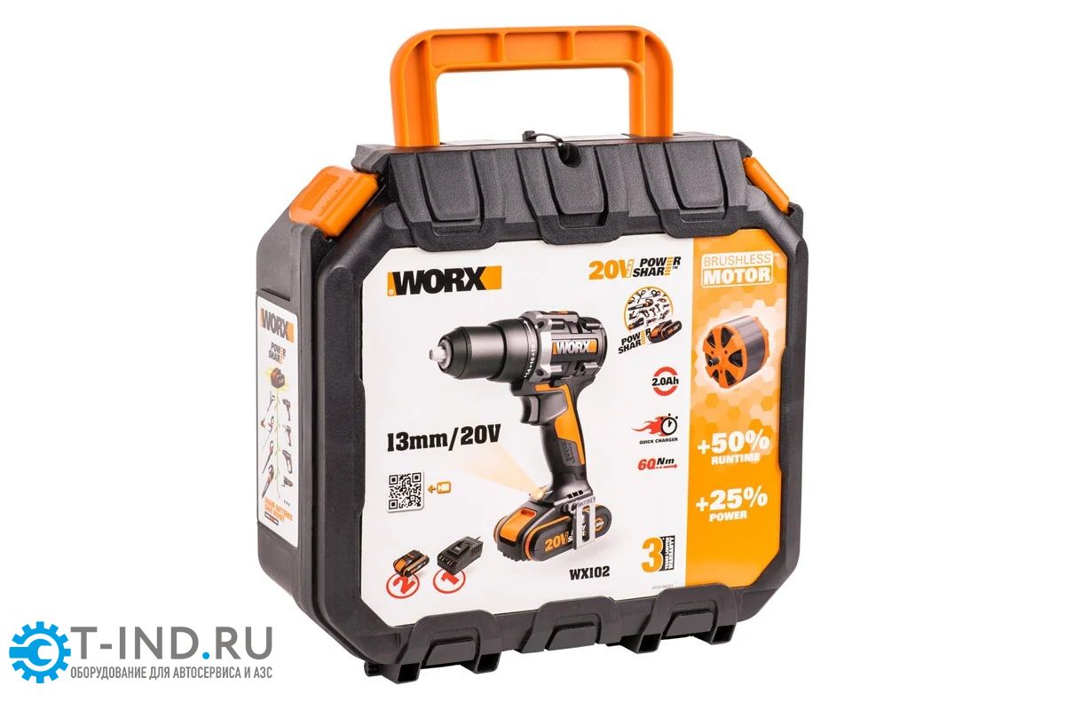 Аккумуляторная бесщёточная дрель-шуруповерт WORX WX102, 20В, 60Нм, бесщеточная, 2Ач х2, ЗУ, кейс