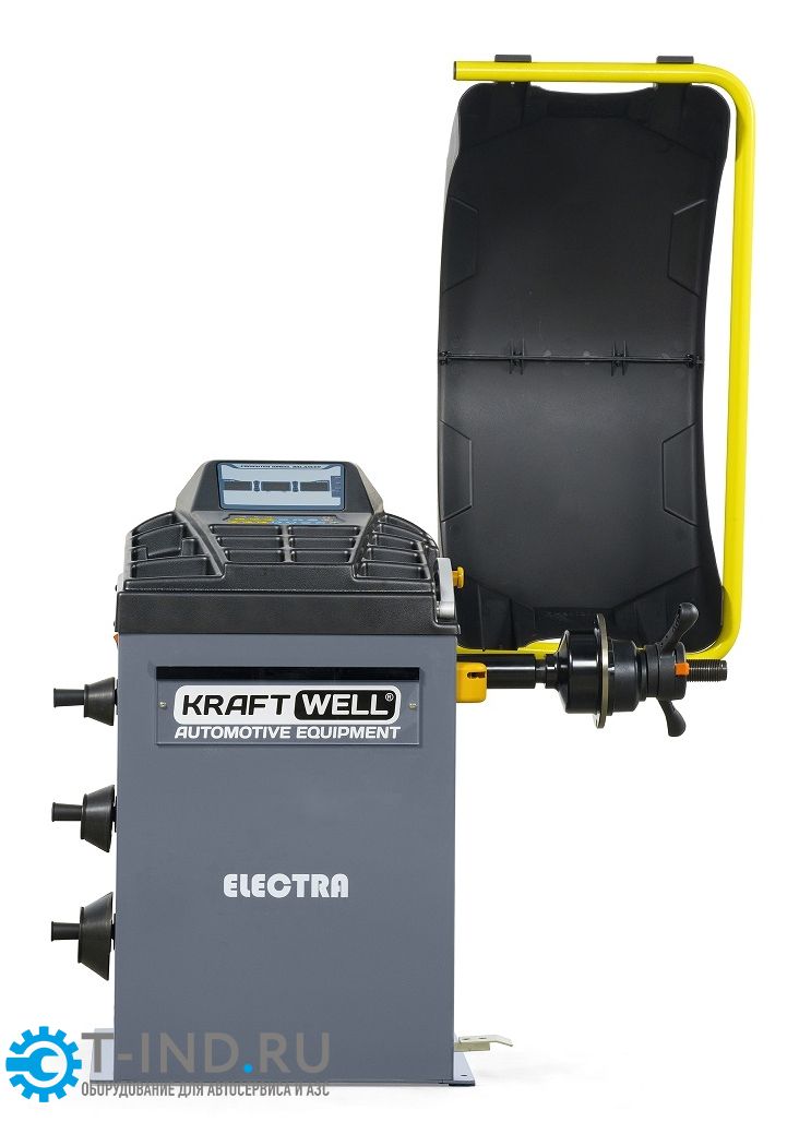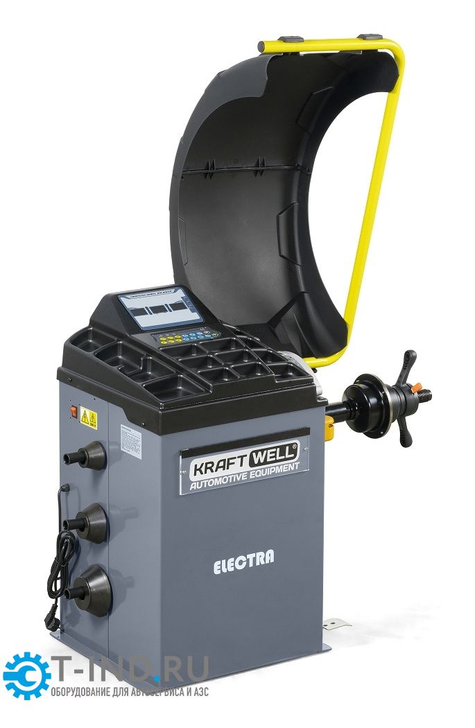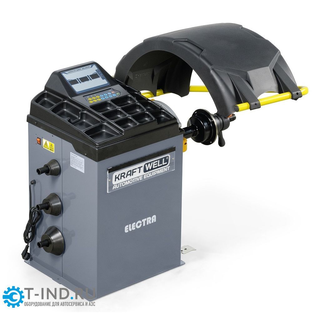 Универсальный балансировочный станок KraftWell ELECTRA (KRW243) с автоматическим вводом 2-х параметров диска для балансировки колес легковых автомобилей, внедорожников, а также легких грузовиков и мотоциклов (необходимы дополнительные опции) с точностью до 1г.
