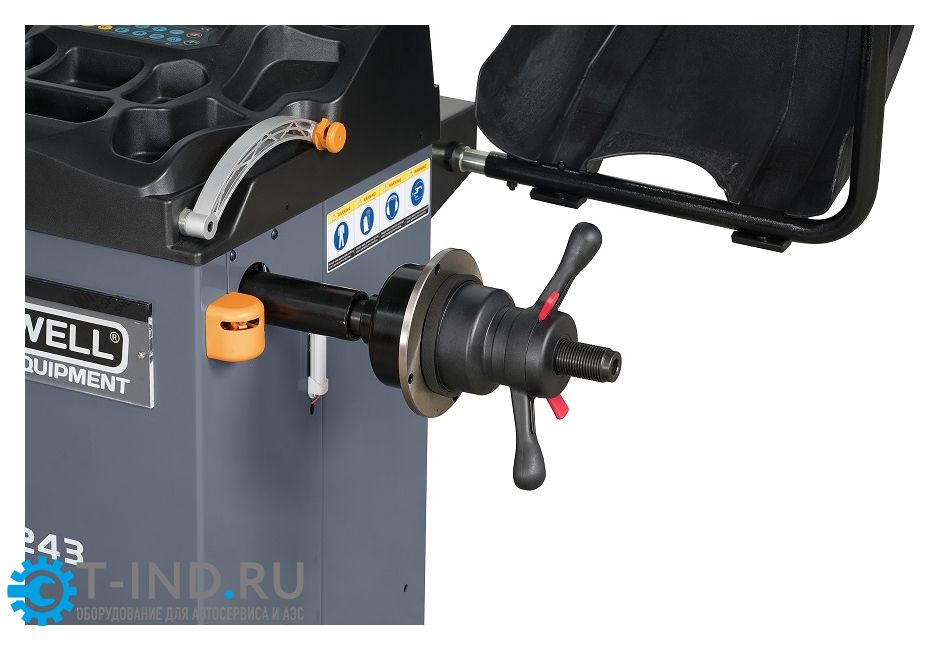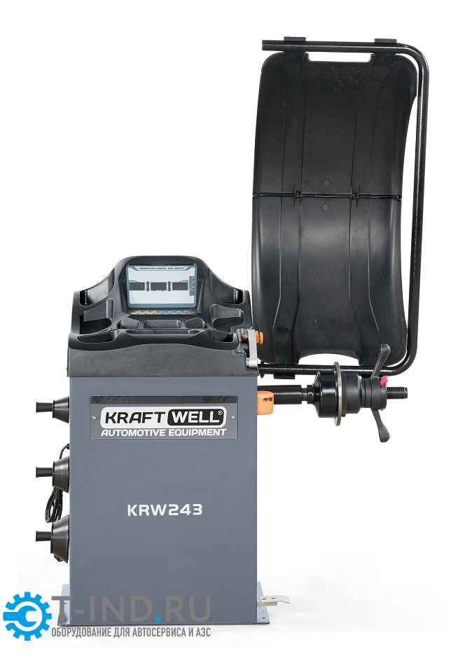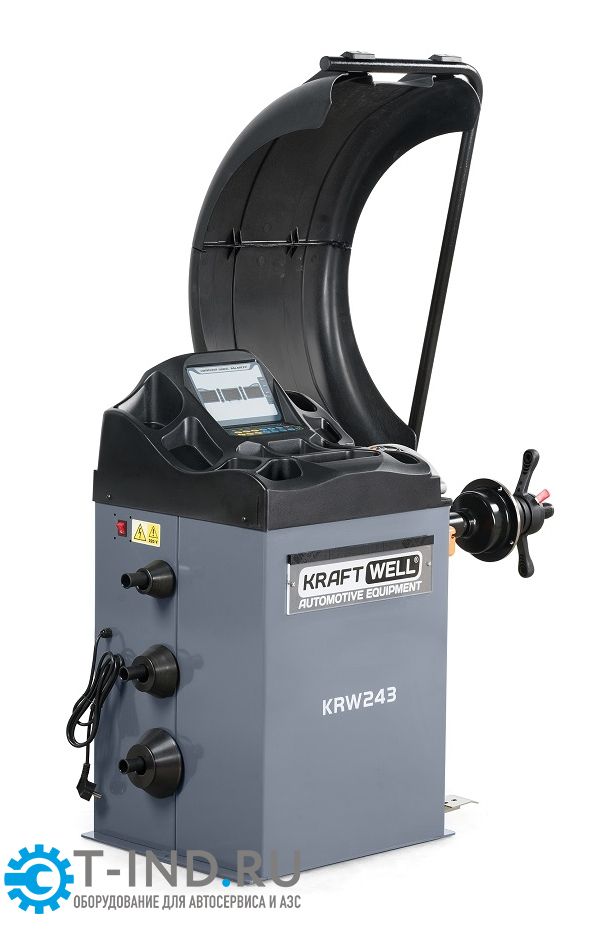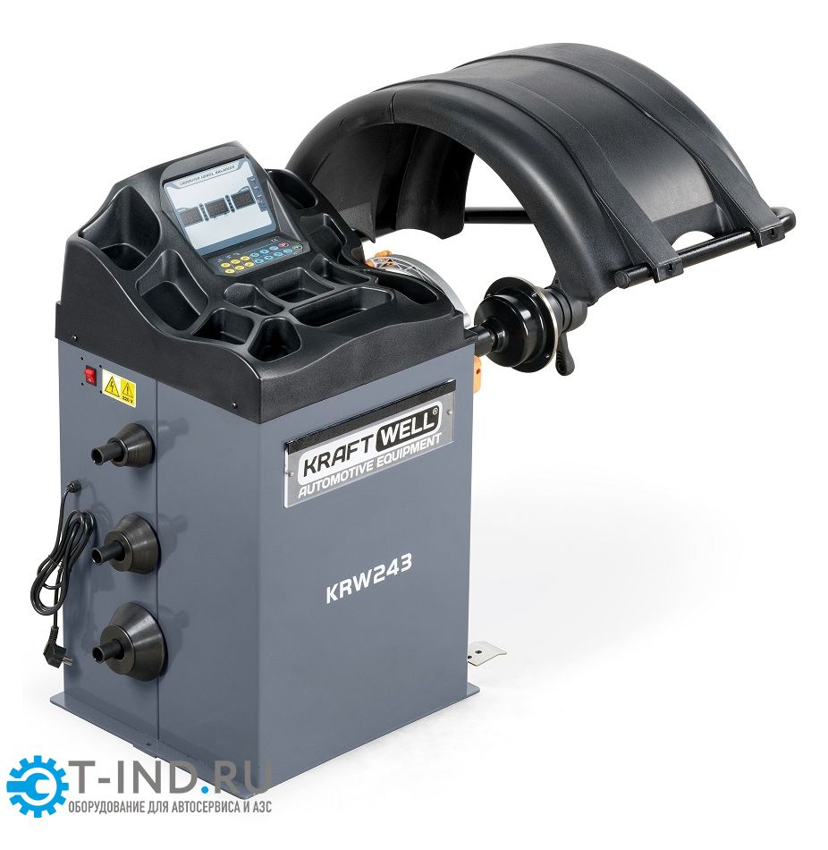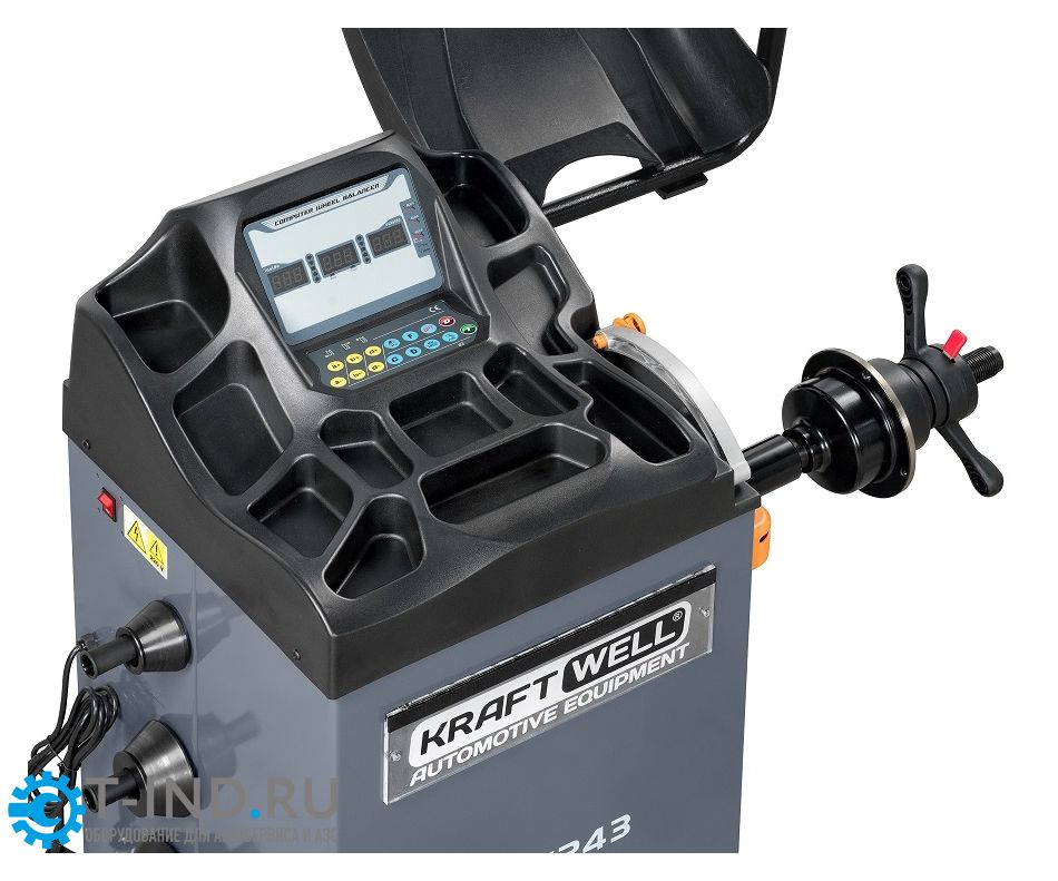 Универсальный балансировочный станок KraftWell KRW243 с автоматическим вводом 2-х параметров диска для балансировки колес легковых автомобилей, внедорожников, а также легких грузовиков и мотоциклов (необходимы дополнительные опции) с точностью до 1г.