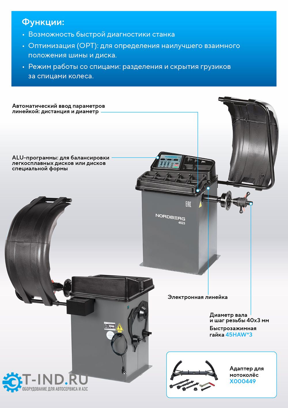 Балансировочный станок NORDBERG 4523(G) – специализированное оборудование для балансировки колес легкового транспорта и микроавтобусов. Только необходимый функционал обеспечивает простую и понятную работу и обслуживание станка.