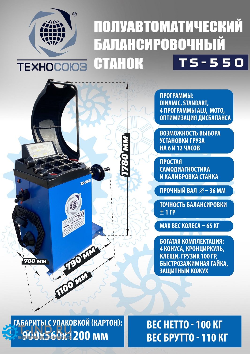 Балансировочный станок Техносоюз TS-550, легковой, полуавтомат, 220В