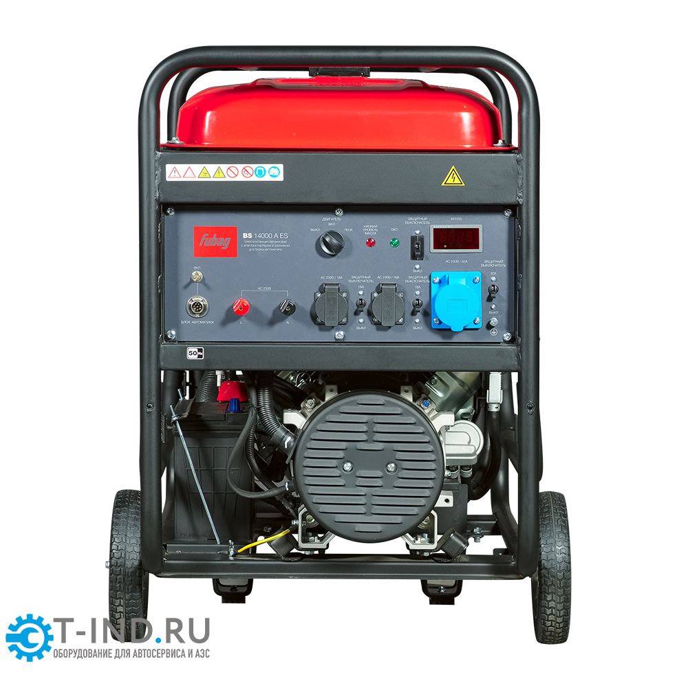 Легкий запуск станции обеспечит электростартер, в комплект поставки входит аккумулятор. Предусмотрена возможность подключения блока автоматики для организации электроснабжения в автоматическом режиме (опция). Управление заслонкой карбюратора и топливного крана происходит в автоматическом режиме, в случае необходимости предусмотрено ручное управление. Панель управления оснащена тремя пыле/влагозащищенными розетками: 2х230В/16А и 1х230В/32А, а так же силовыми клеммами на 230В для возможности подключить нагруженных потребителей. На розетки и клеммы установлена индивидуальная защита от короткого замыкания и перегрузки. Мультифункциональный цифровой дисплей 5 в 1 позволит контролировать выходное напряжение, мощность, ток и частоту, а так же отработанные моточасы для контроля межсервисных интервалов. Индикатор низкого уровня масла предупредит о его недостаточном объеме, а датчик уровня масла отключит электростанцию. Для удобного перемещения станции FUBAG BS 14000 A ES в комплект поставки входят набор колес и ручек.