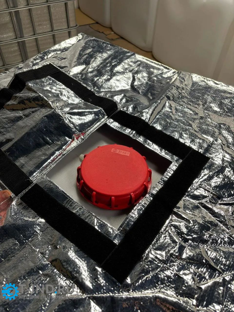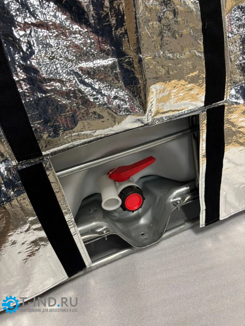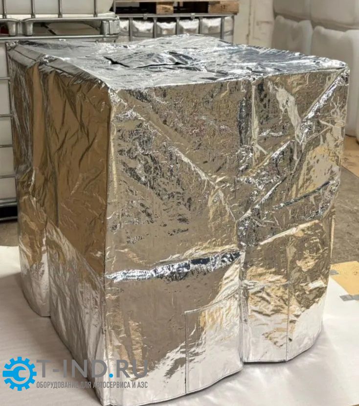 Теплоизоляционный чехол. Используется, когда температура окружающей среды выше, чем температура в емкости. Чехол отражает УФ лучи и препятствует нагреву еврокуба от солнечных лучей. Защищает от осадков.