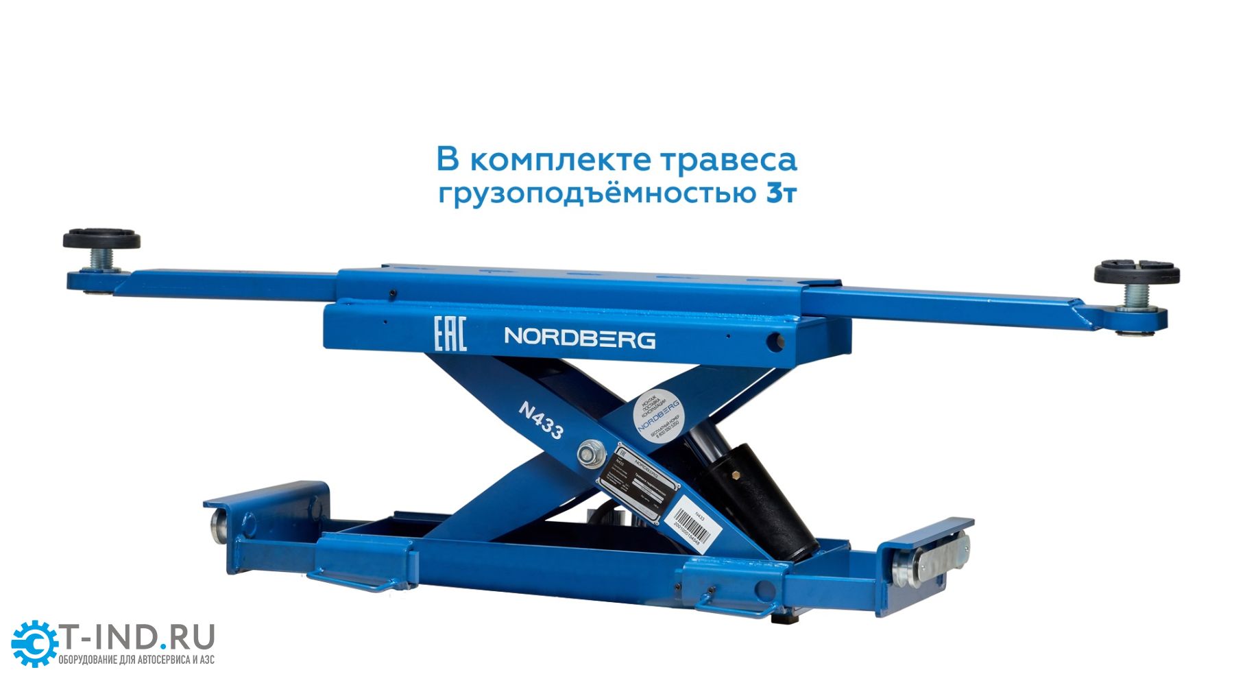 Надежный подъемник с увеличенной грузоподъемностью и удлиненной платформой, c ручной траверсой 3т N433, 380 В для сход-развала (Cиний) NORDBERG 4450_MB(M)