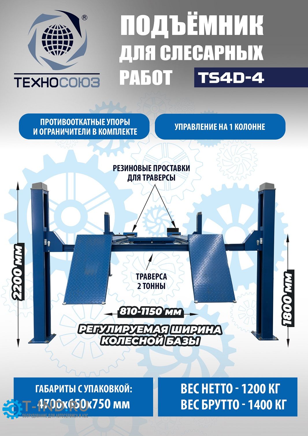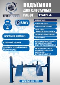 Подъемник четырехстоечный 4 тонны Техносоюз TS4D-4, электрогидравлический, грузовой, 380В