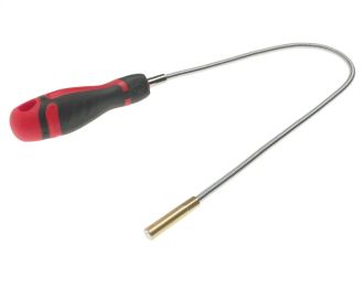 Гибкий стержень магнита сохраняет любою заданную позицию. Удлиненная тонкая конструкция инструмента позволяет производить работы в труднодоступных местах. Эргономичная двухцветная рукоятка изготовлена из высококачественного пластика для предотвращения коррозии от масла и химических веществ.