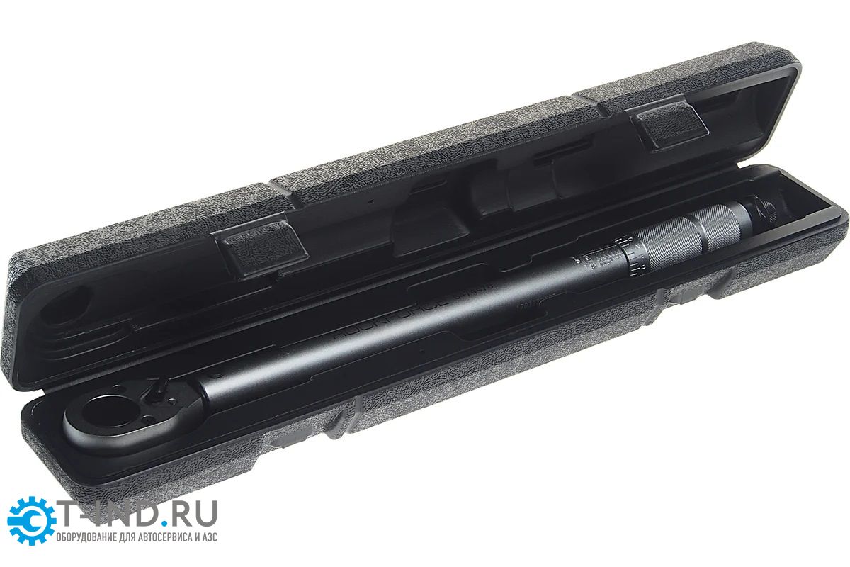 Применяется при затягивании крепежа с регулируемым значением крутящего момента. Износостойкая нескользящая удобная ручка. Принцип работы: динамометрический ключ внешне похож на трещотку, с основным отличием – это наличие у него шкалы, по которой определяется прикладываемое ключом усилие на гайку. В нашем ключе шкала высечена на ключе, а индикатором достижения нужного усилия будет служить “щелчок”. Важно знать: не используйте динамометрический ключ как обычный вороток, если хотите, что бы он прослужил долго, ведь износ инструмента никто не отменял. И самое главное после работы всегда откручивайте ручку назад в нулевое положение. Так как внутри ключа есть пружина, которая сжимается при затяжке, и если оставить ее на долгое время в сжатом статическом положении то она будет терять свои свойства, что приведет к увеличению погрешности(погрешность около 4%) при работе.
