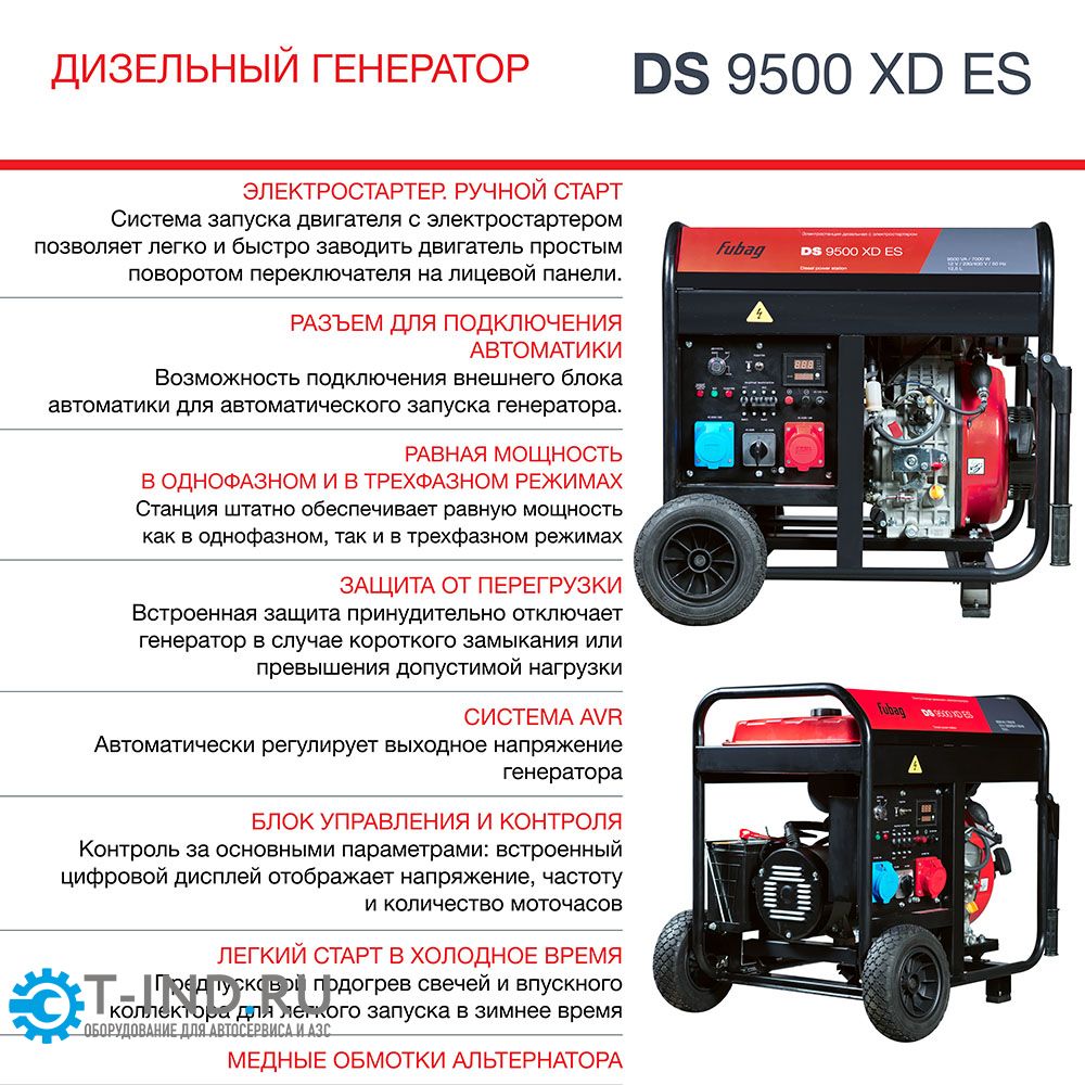 Дизельный генератор с электростартером Fubag DS 9500 XD ES, 220/380В, 10,14/30,4А
