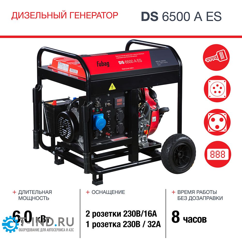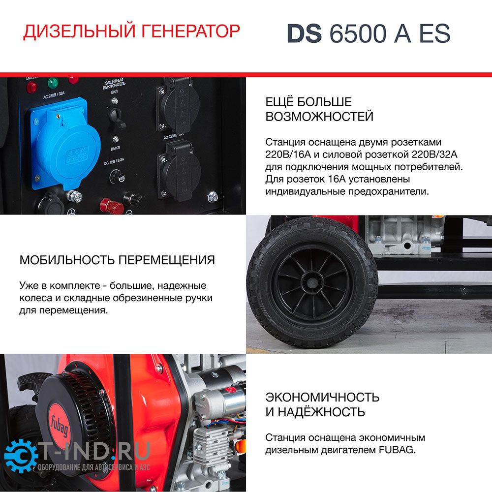Дизельный генератор с электростартером Fubag DS 6500 A ES, с коннектором автоматики, 220В, 25А