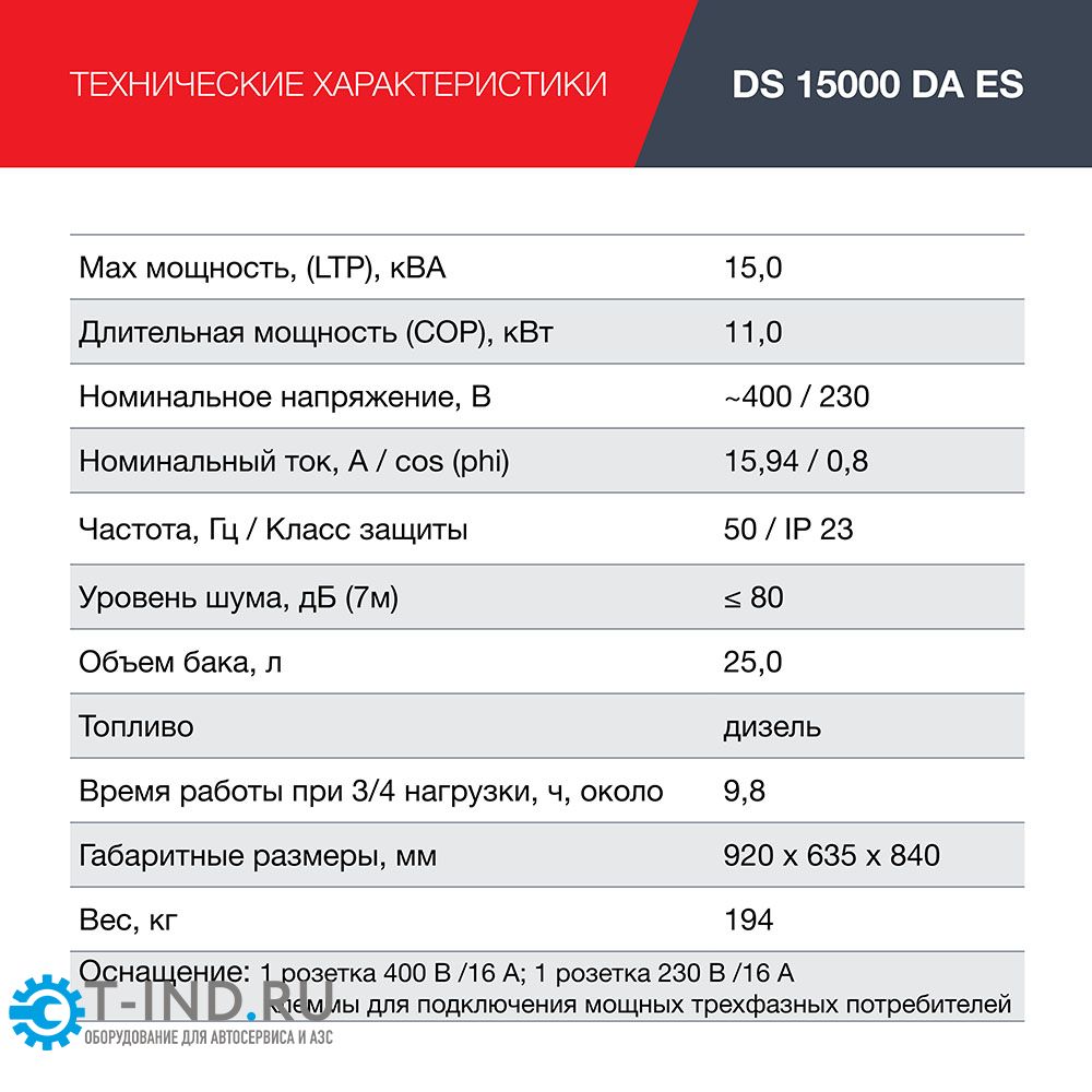 Дизельный трехфазный генератор FUBAG DS 15000 DA ES с профессиональным двухцилиндровым двигателем, электростартером и возможностью подключения блока автоматики. Лучший выбор для электроснабжения производств, стройплощадок, объектов жилищно-коммунального хозяйства. Наличие предпусковой системы подогрева воздуха облегчает запуск при отрицательных температурах. Топливный бак 25 л обеспечивает непрерывную работу без дозаправки в течение 10 часов при 75% нагрузке. Электростартер позволяет быстро запустить дизельный двигатель. Колеса и ручки в комплекте гарантируют удобную транспортировку.