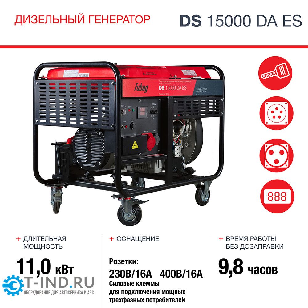 Дизельный генератор с электростартером Fubag DS 15000 DA ES, с коннектором автоматики, 220/380В, 15,94А