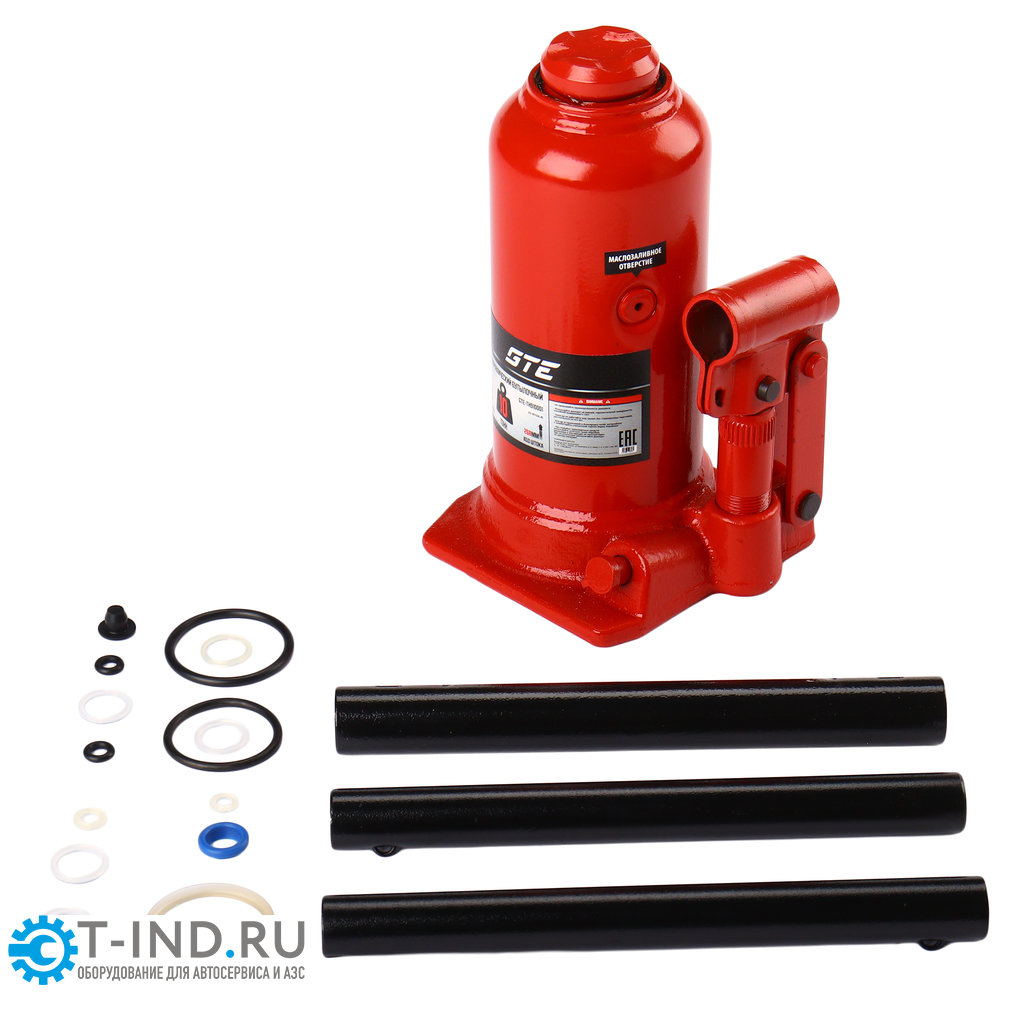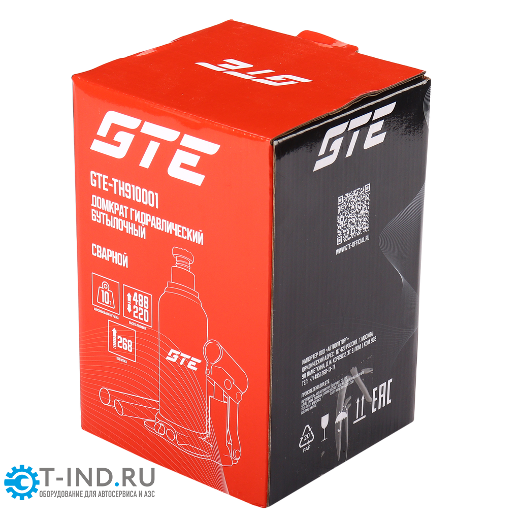 Домкрат бутылочный GTE‑TH910001, 10 т, 180–430 мм. Профессиональный гидравлический бутылочный домкрат GTE‑TH910001 предназначен для подъёма грузов массой до 10 тонн. Оптимален для автосервисов, шиномонтажных мастерских, складов и частных гаражей — там, где требуется надёжное и безопасное поднятие тяжёлых объектов.