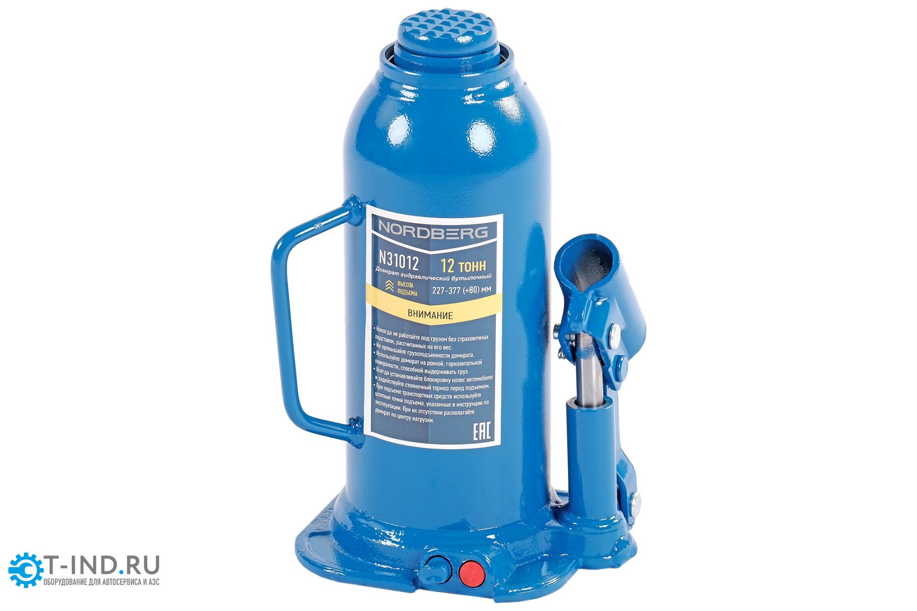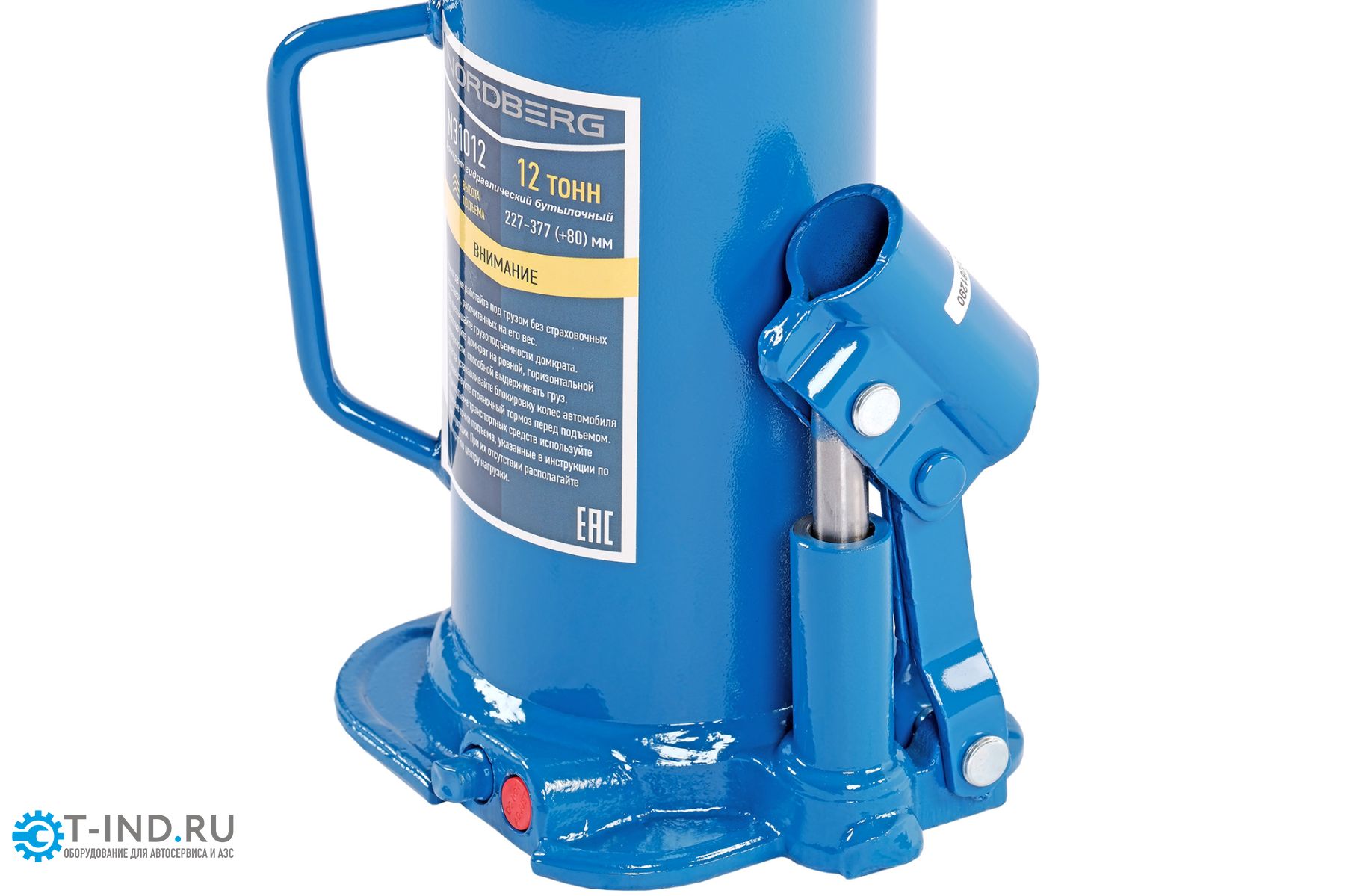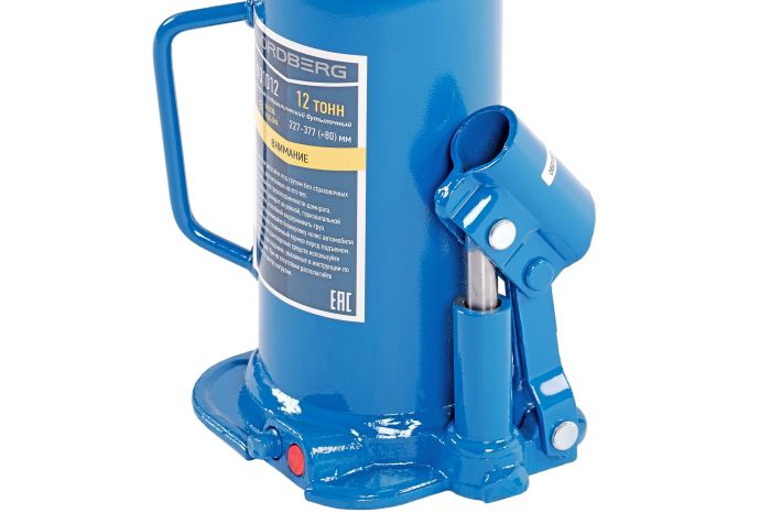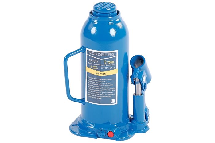 Бутылочный домкрат Nordberg N31012 предназначается для подъема лёгкой техники. Съемный рычаг способствует простоте хранения и транспортировки домкрата.