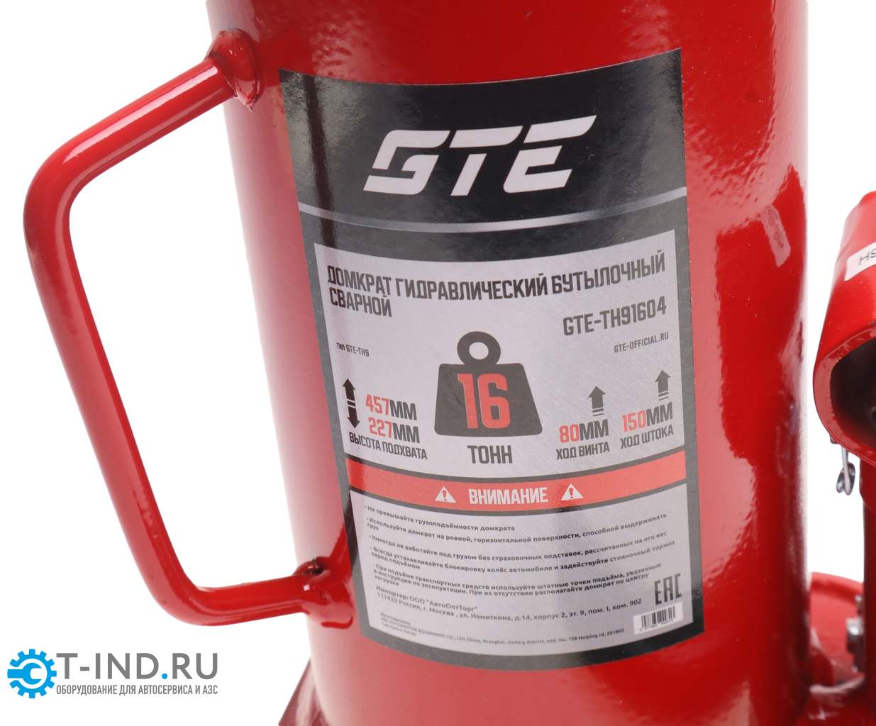 - При производстве бутылочных домкратов GTE используется только современное оборудование и высококачественные материалы.