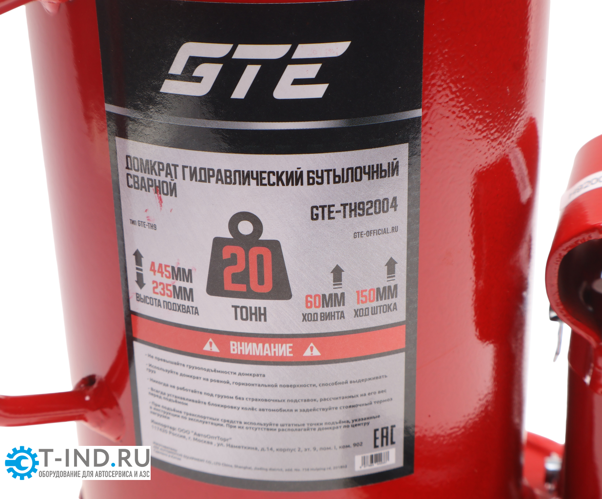- При производстве бутылочных домкратов GTE используется только современное оборудование и высококачественные материалы.