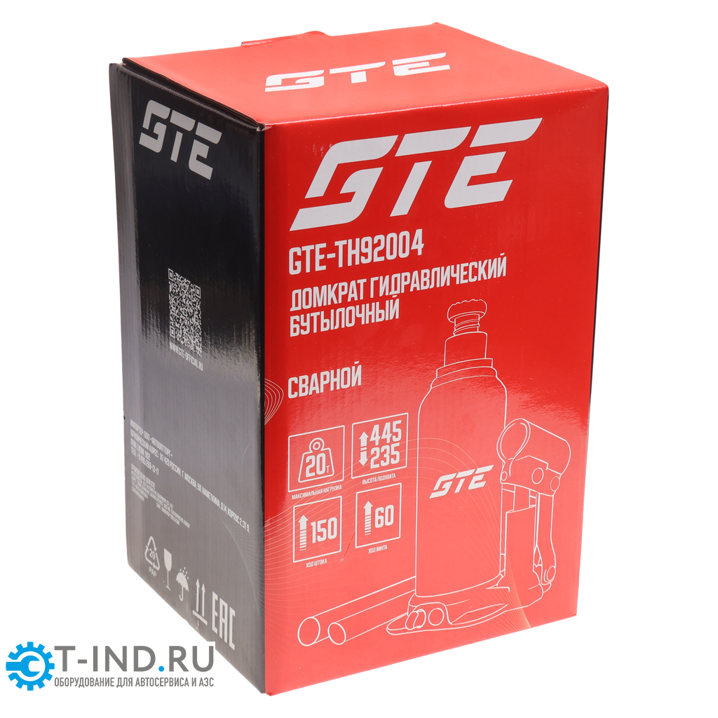 Домкрат бутылочный гидравлический 20т GTE GTE-TH92004, 235-445мм