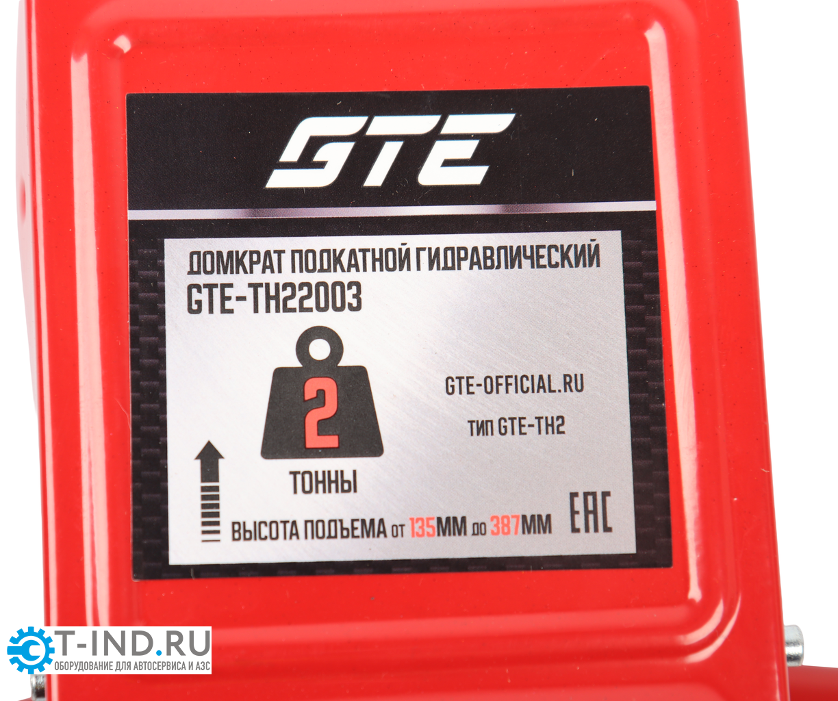 Домкрат гидравлический подкатной 2т GTE GTE-TH22003, 135-387мм