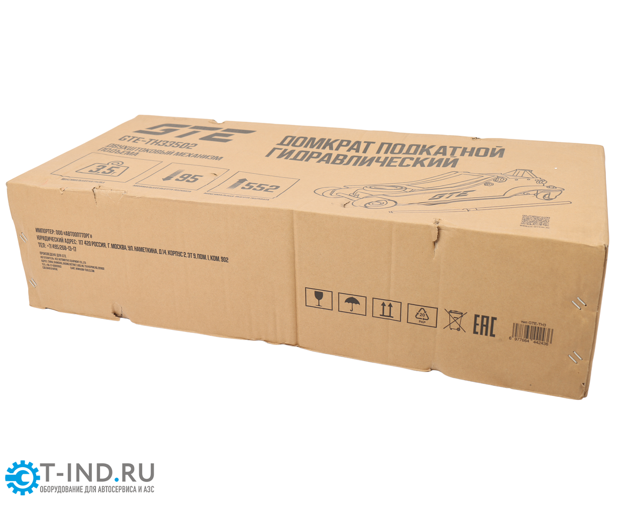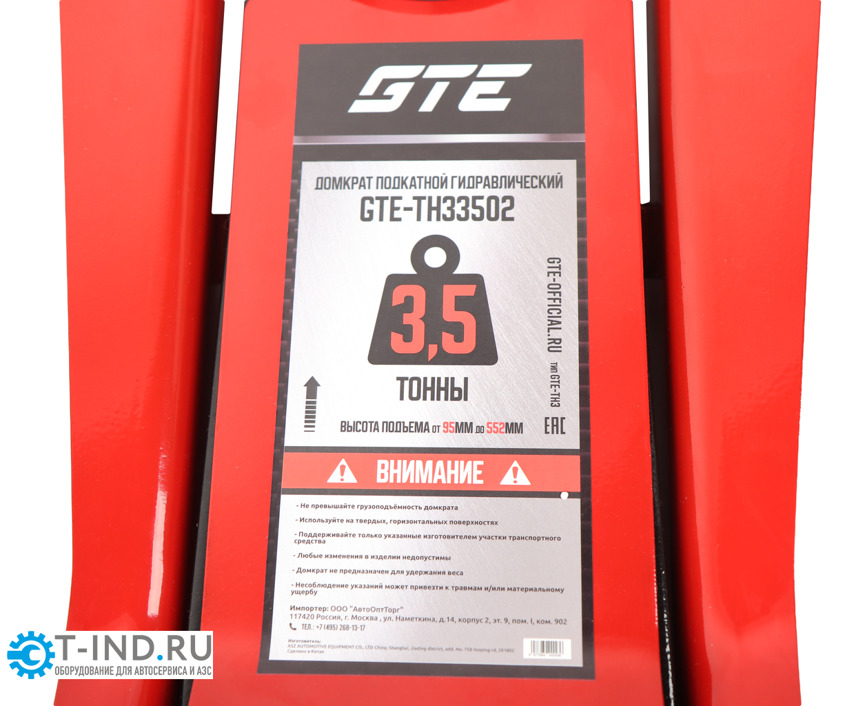Домкрат гидравлический подкатной 3.5т GTE GTE-TH33502, 95-552мм, двухпоршневой, низкопрофильный