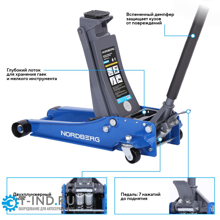 Домкрат подкатной гидравлический 4 тонны Nordberg N32039, с педалью
