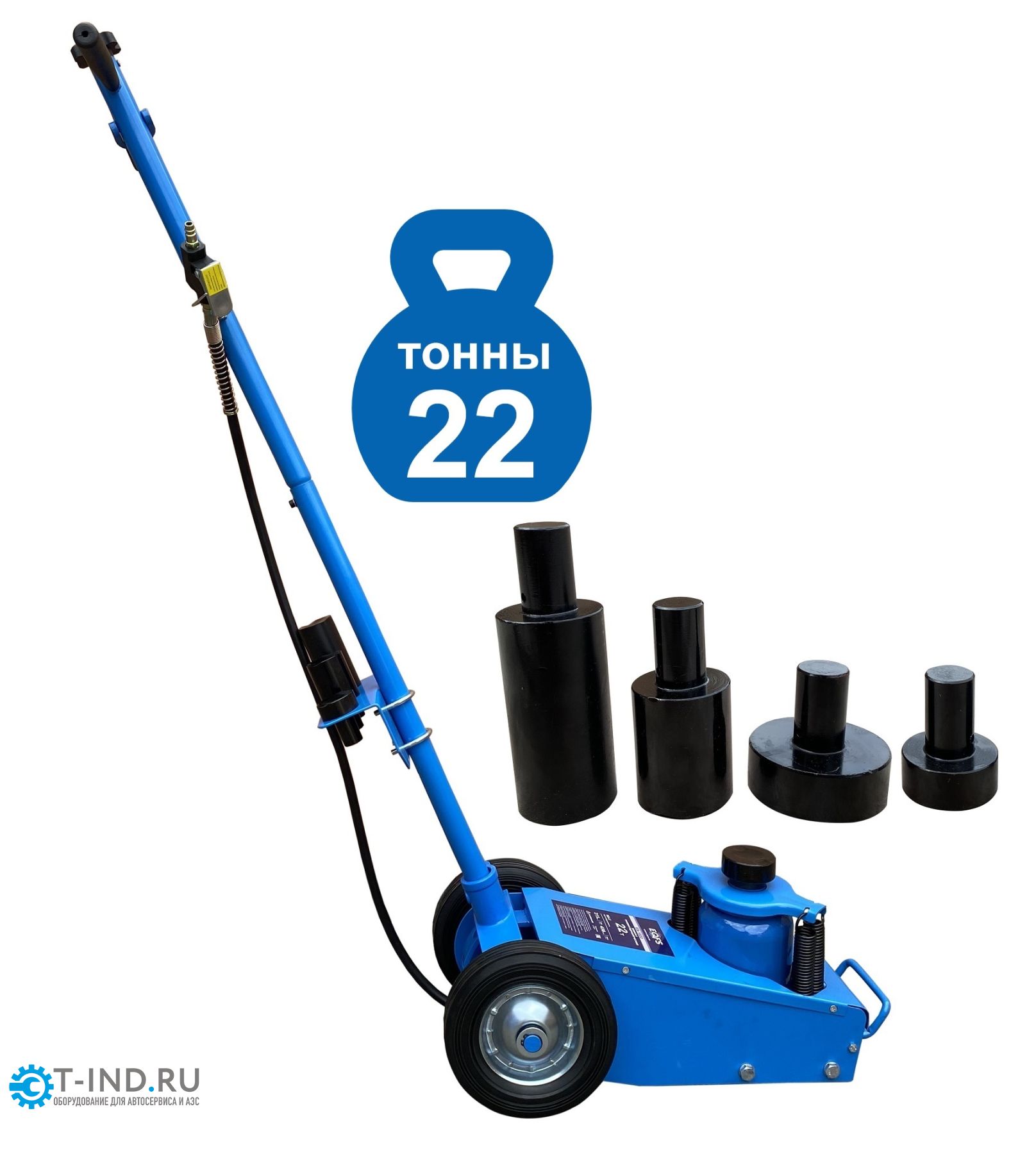 Пневмогидравлический домкрат Г/П - 22 т. Мобильный. Закаленный шток цилиндра обеспечивает надежность работы. 4 возвратные пружины для быстрого опускания домкрата. Разъем для подключения пневмосети. Клапан для быстрого опускания домкрата. Фиксатор угла наклона рукоятки. Угол наклона рукоятки 0-90грд. Удобная ручка для переноски домкрата. В комплекте 4 удлиняющих адаптера: 25 мм, 25 мм, 60 мм, 100 мм. Высота подхвата: 215-456 мм с адаптером 556 мм.