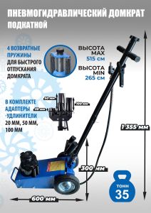 Домкрат подкатной пневмогидравлический 35 тонн Техносоюз TS1600-7, автомобильный