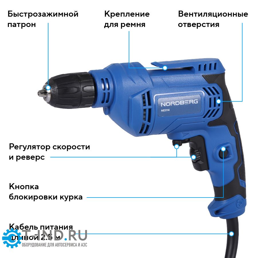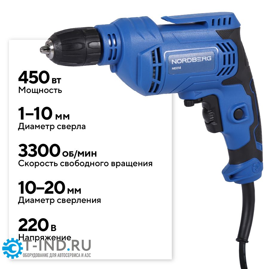 Дрель электрическая Nordberg NE014, до 10мм, 450Вт, 220В