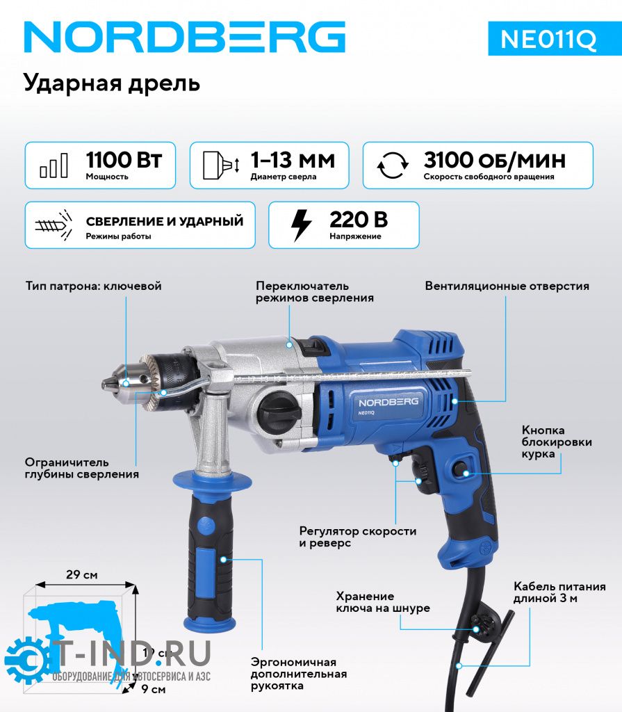 Дрель электрическая ударная Nordberg NE011Q, до 13мм, 1100Вт, 220В