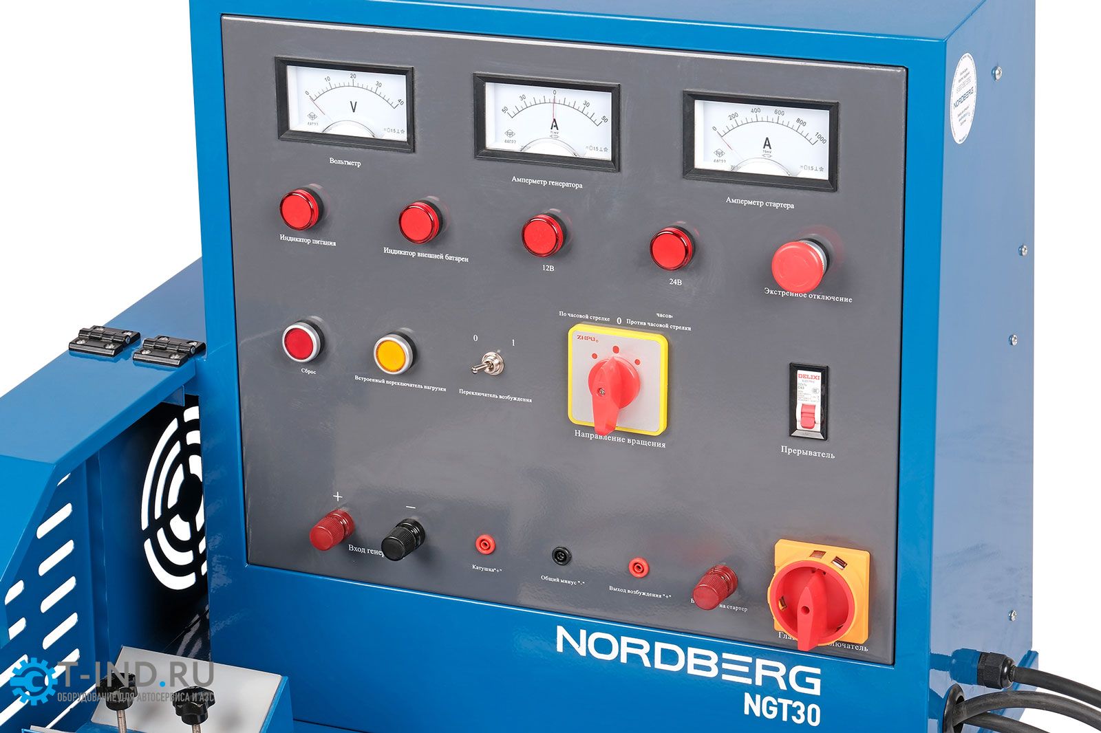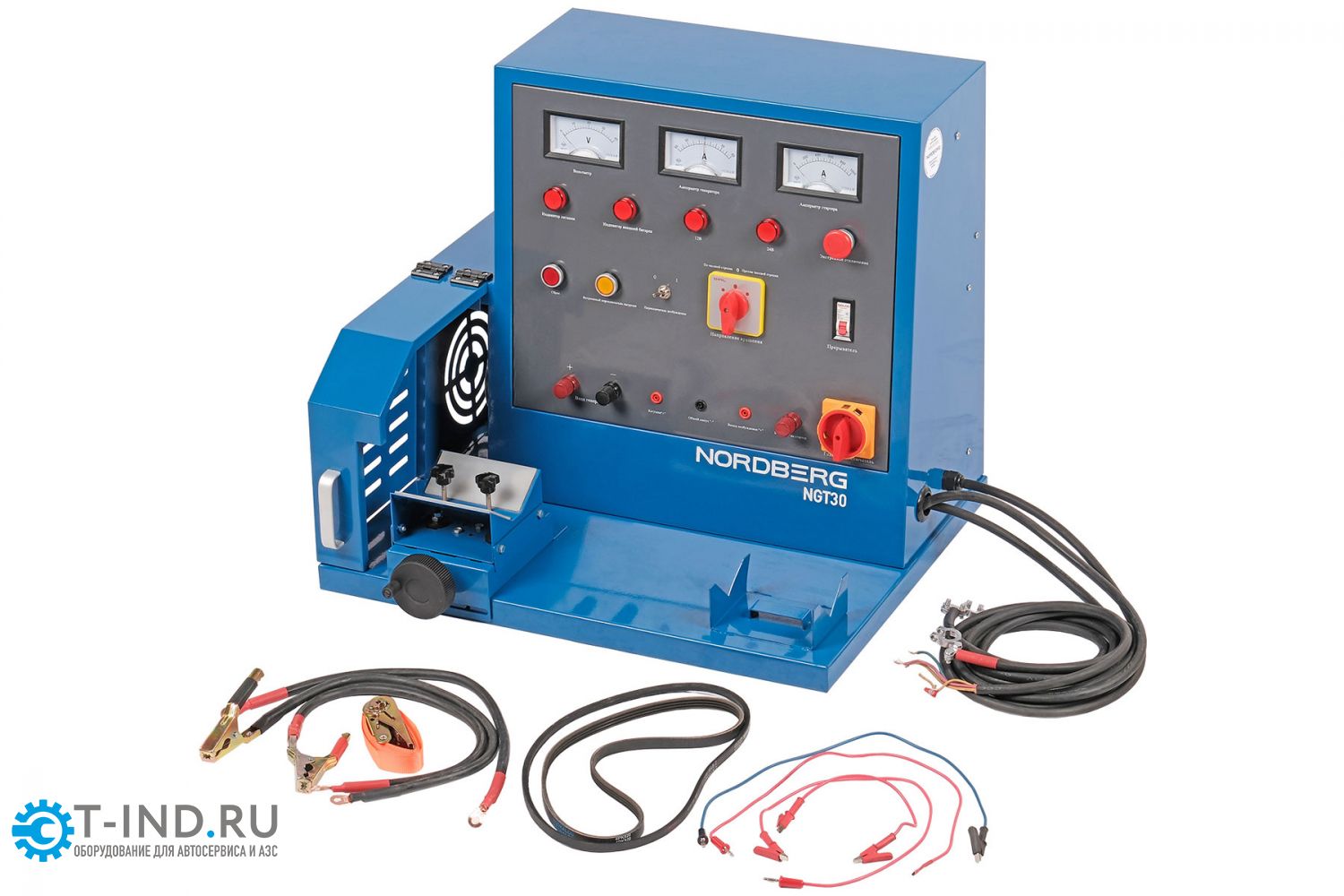 Стенд NORDBERG NGT30 – диагностическое оборудование для тестирования стартеров и генераторов транспортных средств. Стенд осуществляет проверку генераторов с номинальным напряжением 12 В, 24 В и стартеров в режиме холостого хода. Помогает специалисту оценить исправность или степень износа компонентов, принять решение о необходимости ремонта и провести проверку качества проведенного ремонта. Питание от электросети 380 В, а также 12 и 24 В, для возбуждения генератора и постоянный ток для стартера за счет выносного АКБ (аккумулятор не включен в комплект поставки).