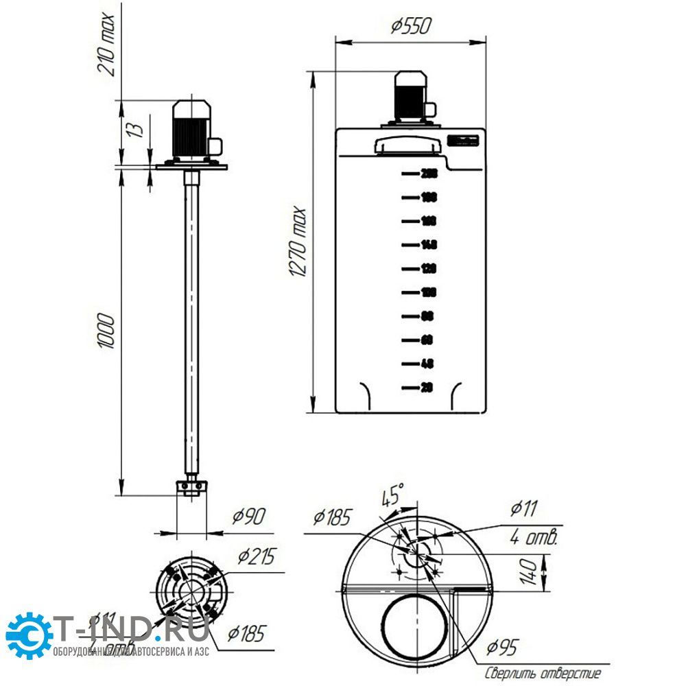 Мешалка специально подобрана для дозировочной емкости 200 литров с учетом габаритов и конструктивных особенностей емкости. Для установки мешалки вырезаны все необходимые отверстия в емкости, вам остается только прикрутить крепления мешалки к емкости. Емкость и мешалка транспортируются отдельно друг от друга в целях сохранности.