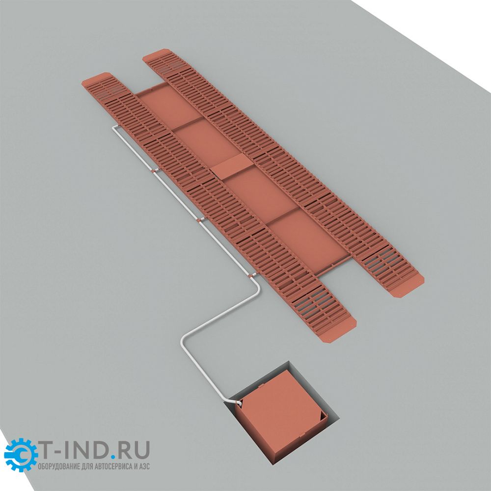 Эстакада серии «Комфорт» любой длины комплектуется системой слива воды в приямок, обеспечивающей максимальное удобство оператора очистной установки. Система слива состоит из одного сливного шланга от эстакады в приямок и комплекта соединительных патрубков в необходимом количестве.