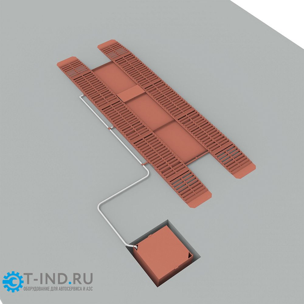 Эстакада серии «Комфорт» любой длины комплектуется системой слива воды в приямок, обеспечивающей максимальное удобство оператора очистной установки. Система слива состоит из одного сливного шланга от эстакады в приямок и комплекта соединительных патрубков в необходимом количестве.