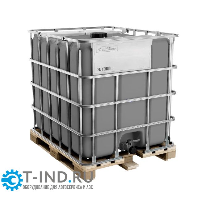 Еврокуб на деревянном поддоне серый, 1000л, в обрешётке