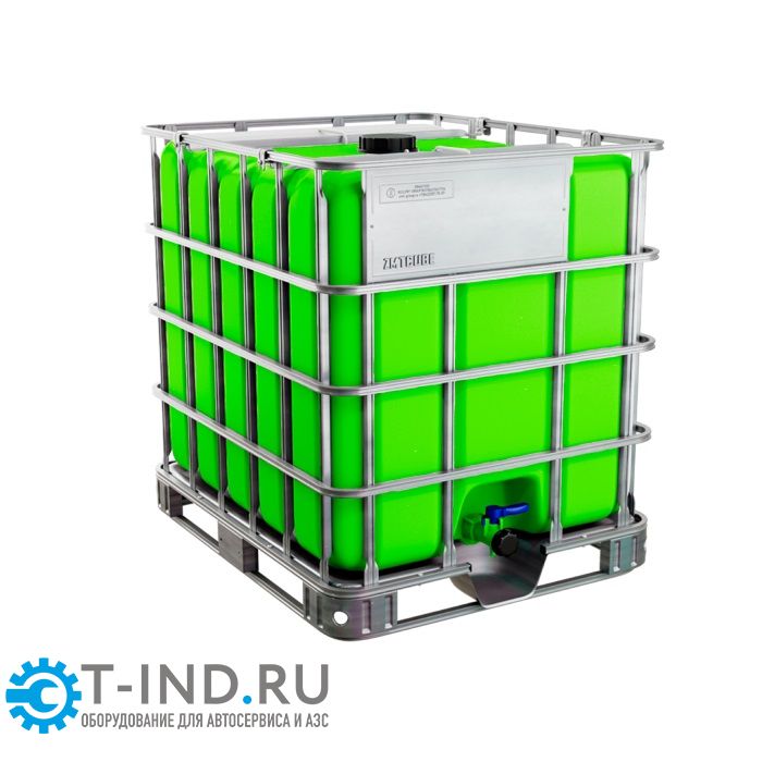 Еврокуб на металлическом поддоне зелёный, 1000л, в обрешётке