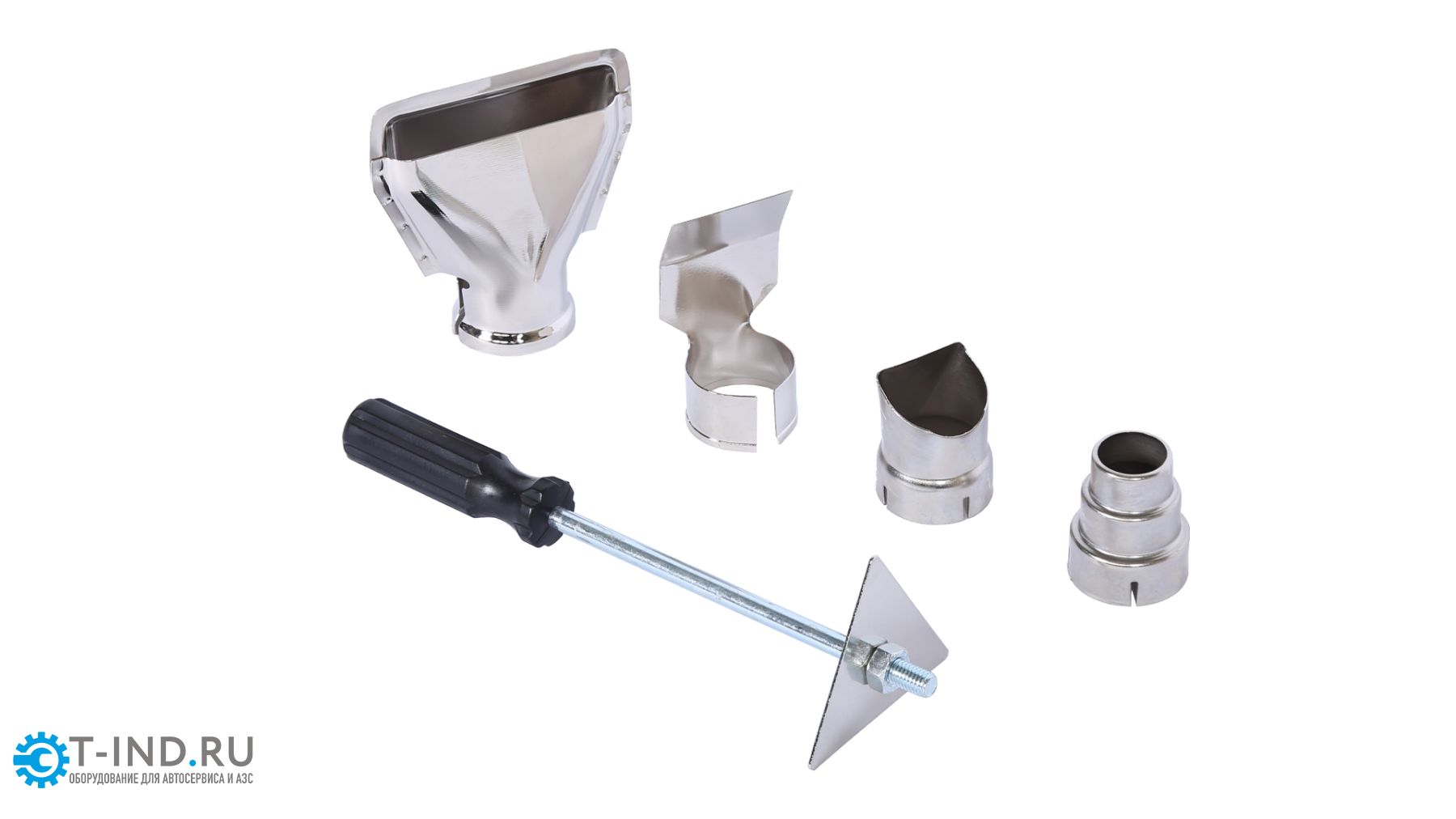 - Четыре насадки в комплекте: 1) отражатель для нагрева трубок, 2) редукционная для точечного нагрева, 3) для защиты стекла, 4) “рыбий хвост” для распределения горячего воздуха на большой площади