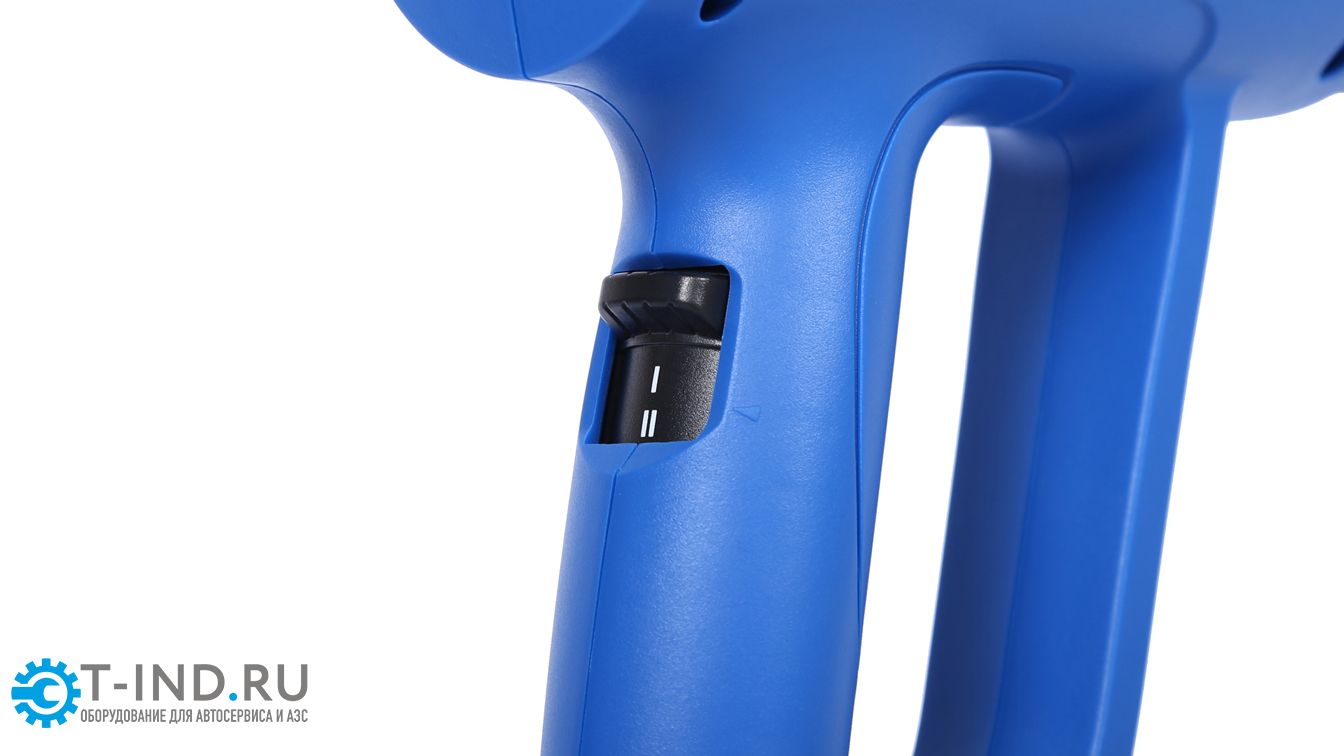 - Два режима подачи воздуха с регулировкой температуры: 1 режим 50-450 °С (250 л/мин), 2 режим 90-600 °С (500 л/мин)
