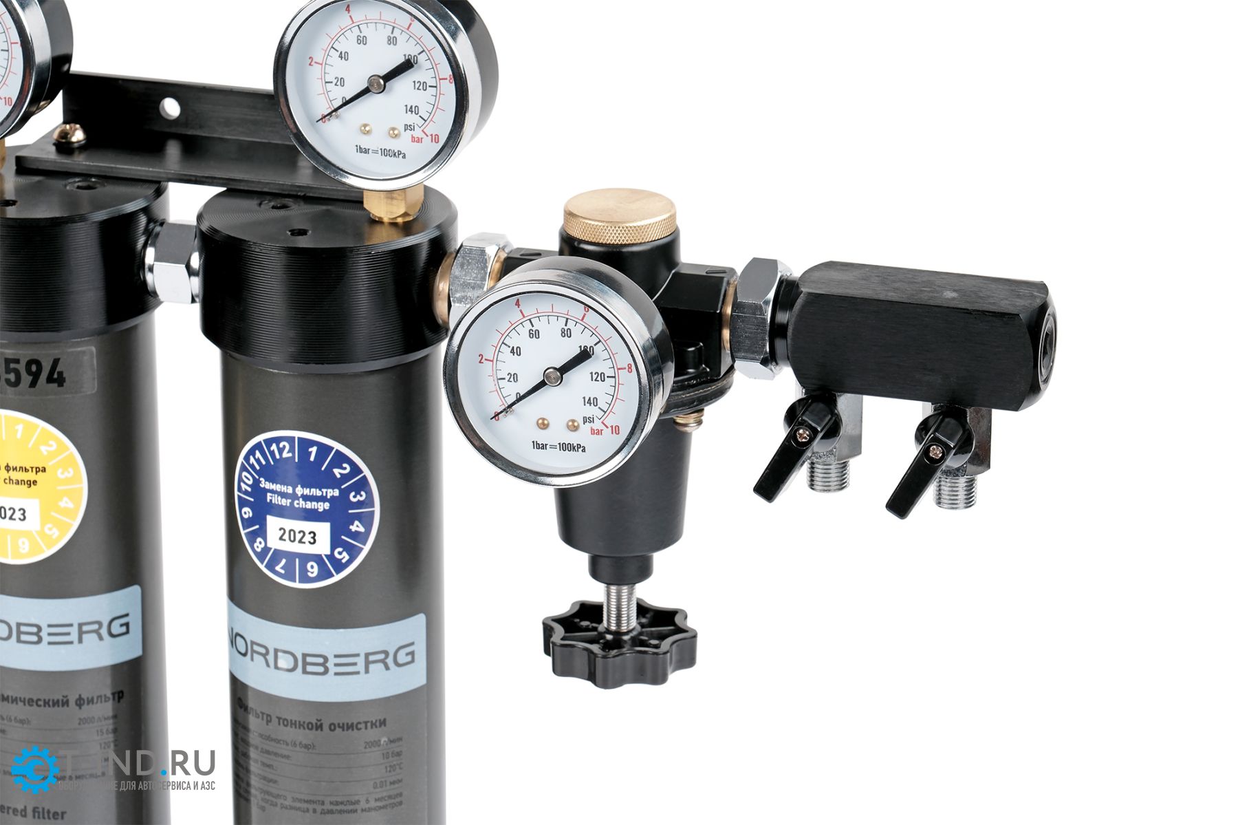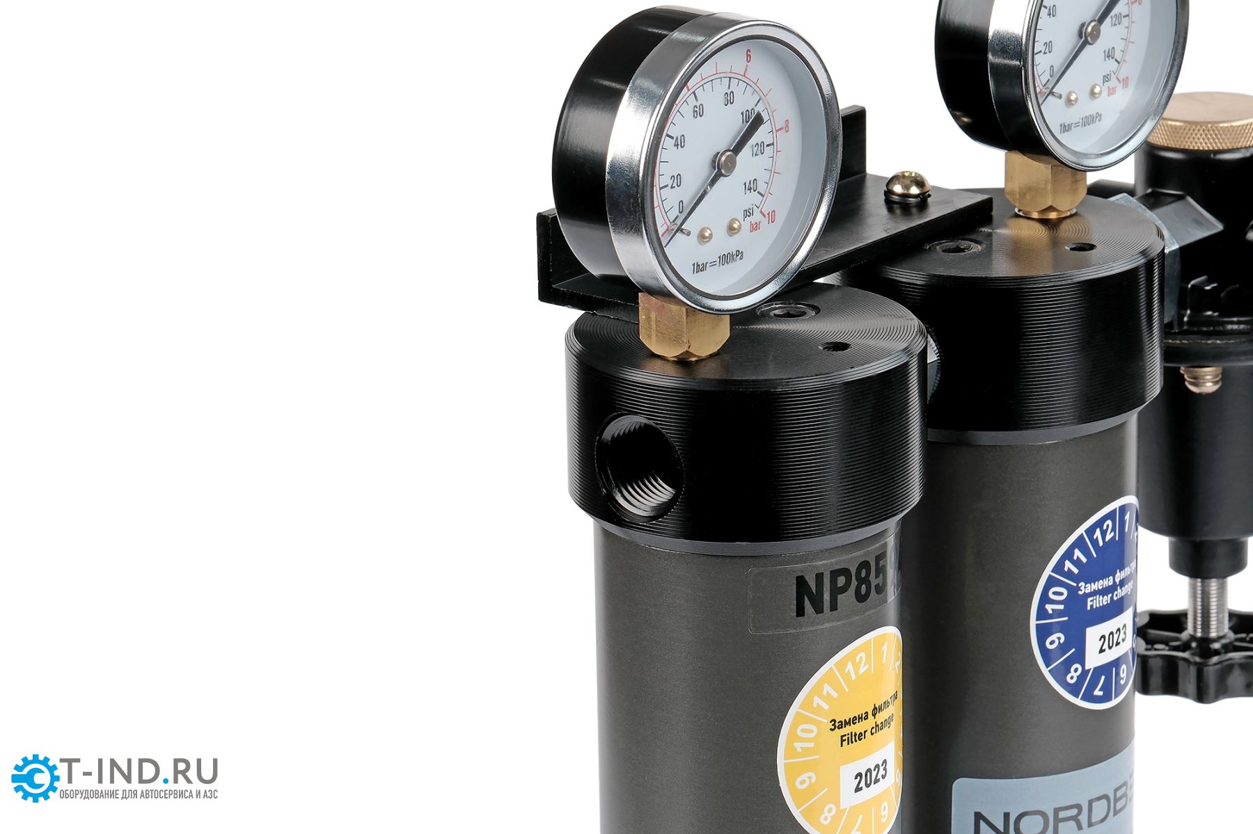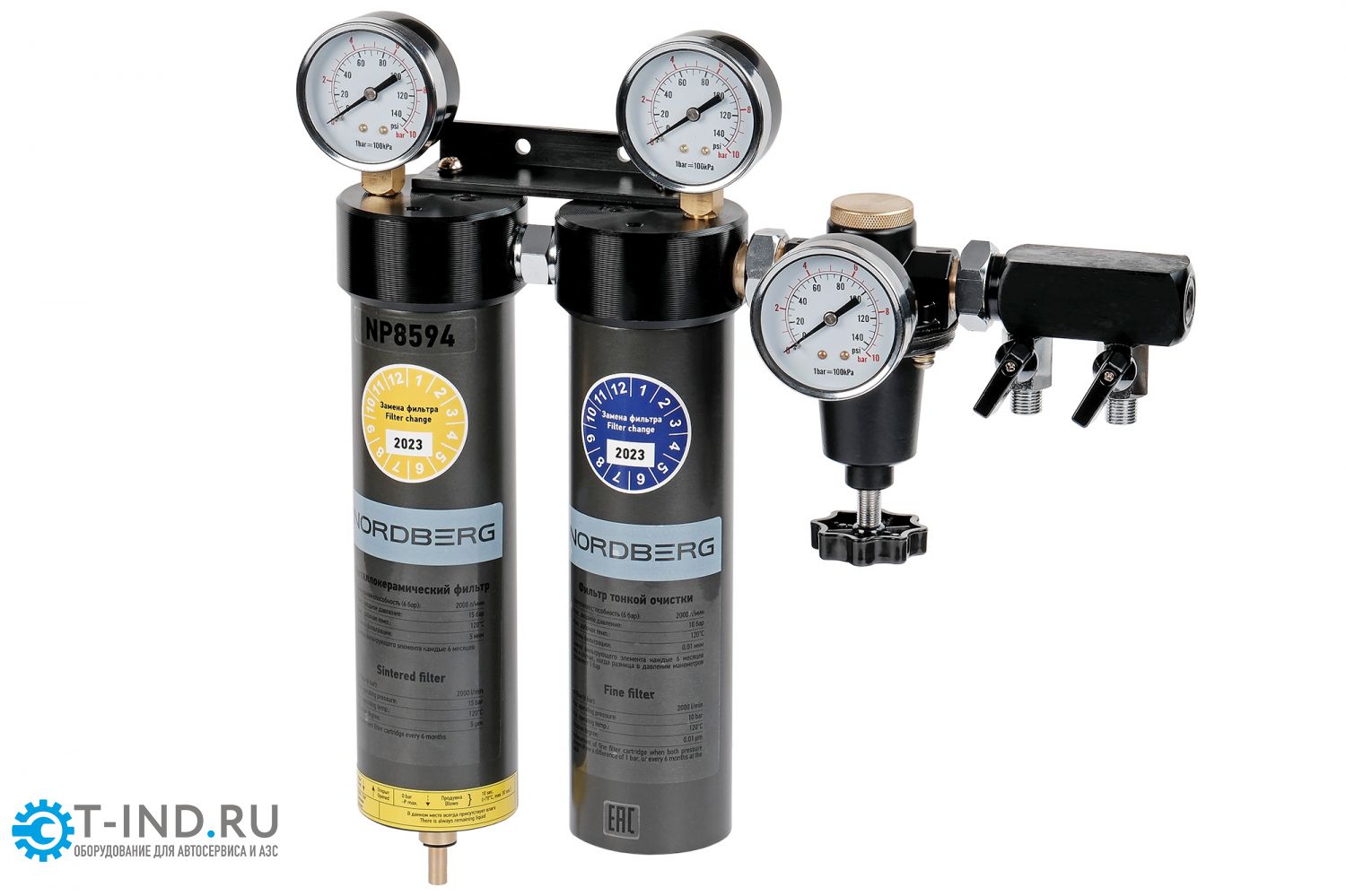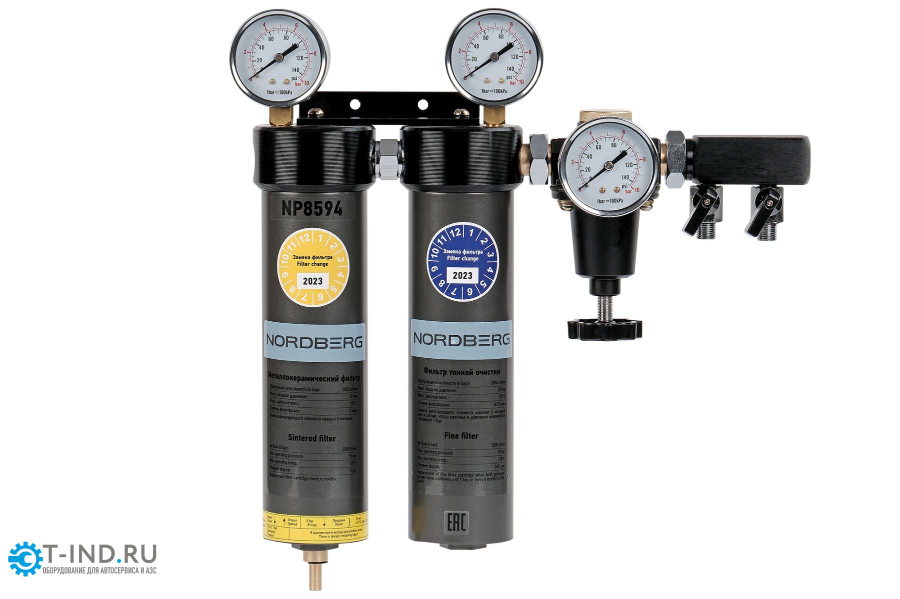 Двухступенчатая фильтр-группа NORDBERG NP8594 подходит для краскопультов с манометрами и регулятором давления предназначена для окрасочных камер и зон подготовки к окраске.