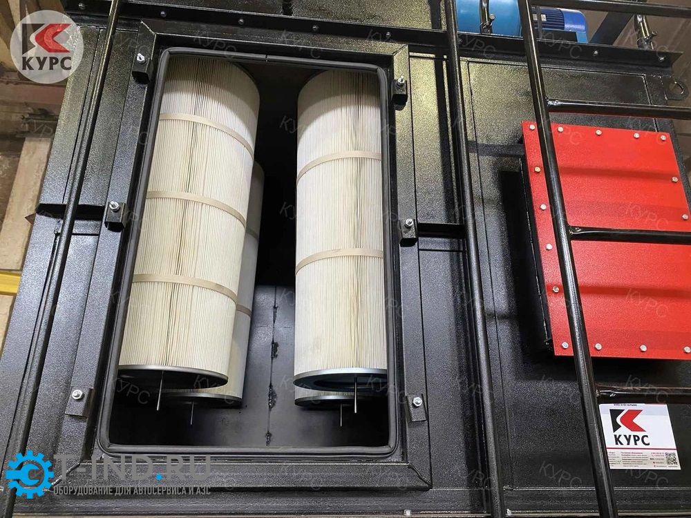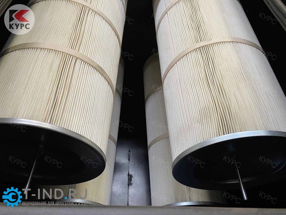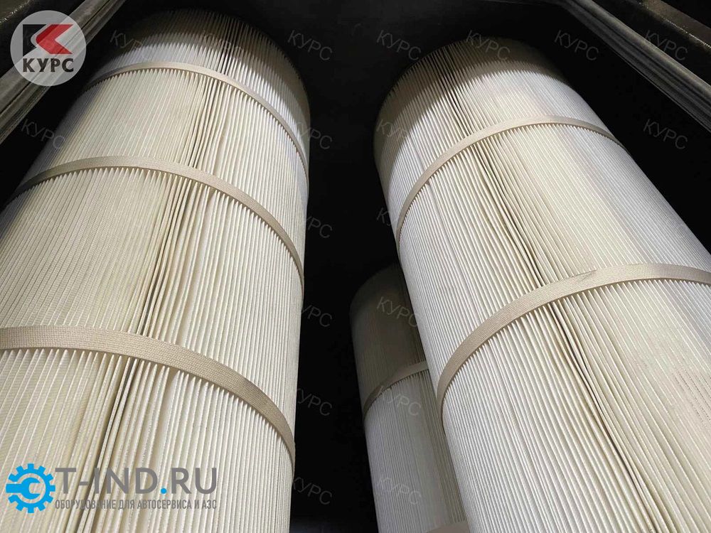 Фильтрующий элемент очищается импульсами сжатого воздуха, поступающего с большой скоростью и расширяющегося на внутренней поверхности картриджа. Реле времени контролирует длительность и частоту между импульсами.