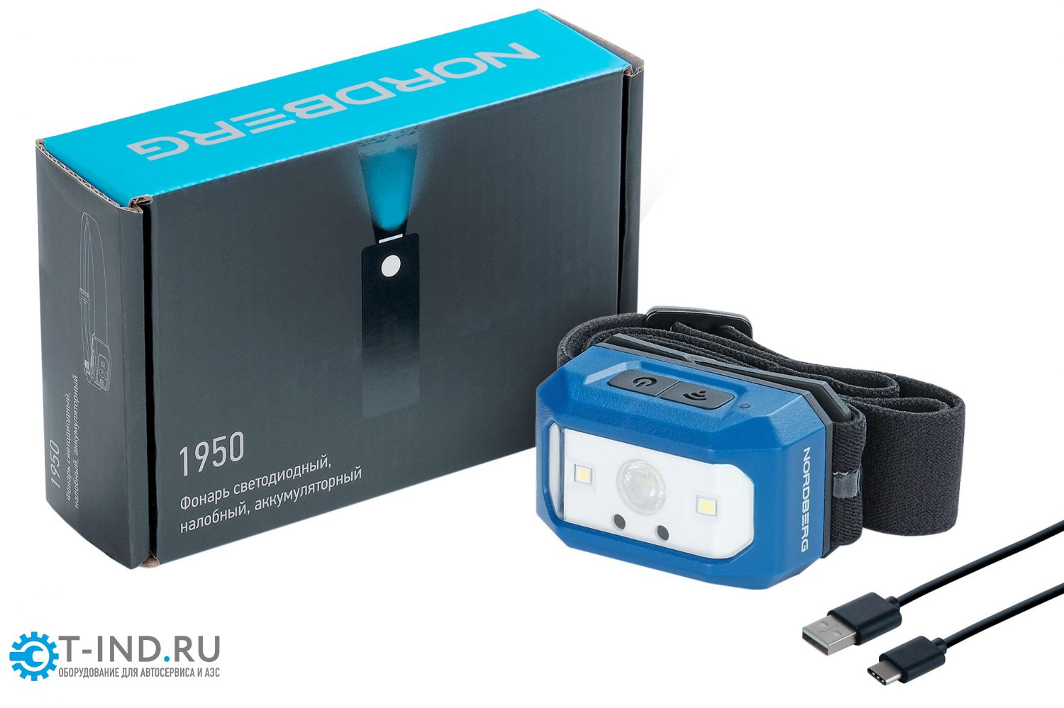 Фонарь светодиодный налобный, аккумуляторный Nordberg 1950, 3,7 В
