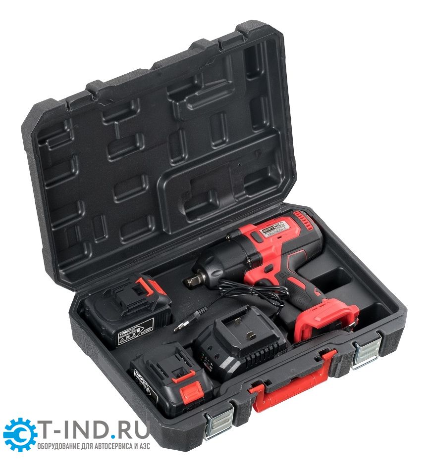 - Гайковерт поставляется в пластиковом кейсе с удобной ручкой для переноски
