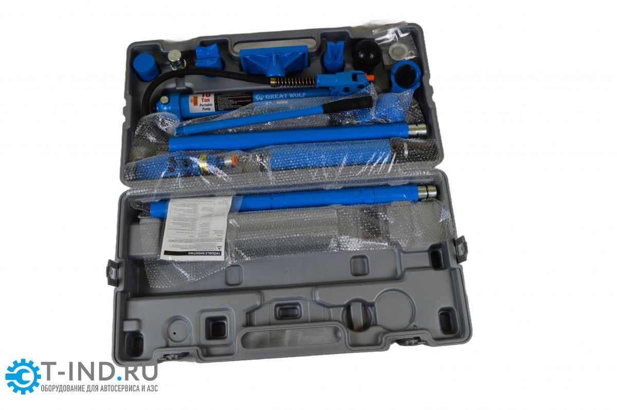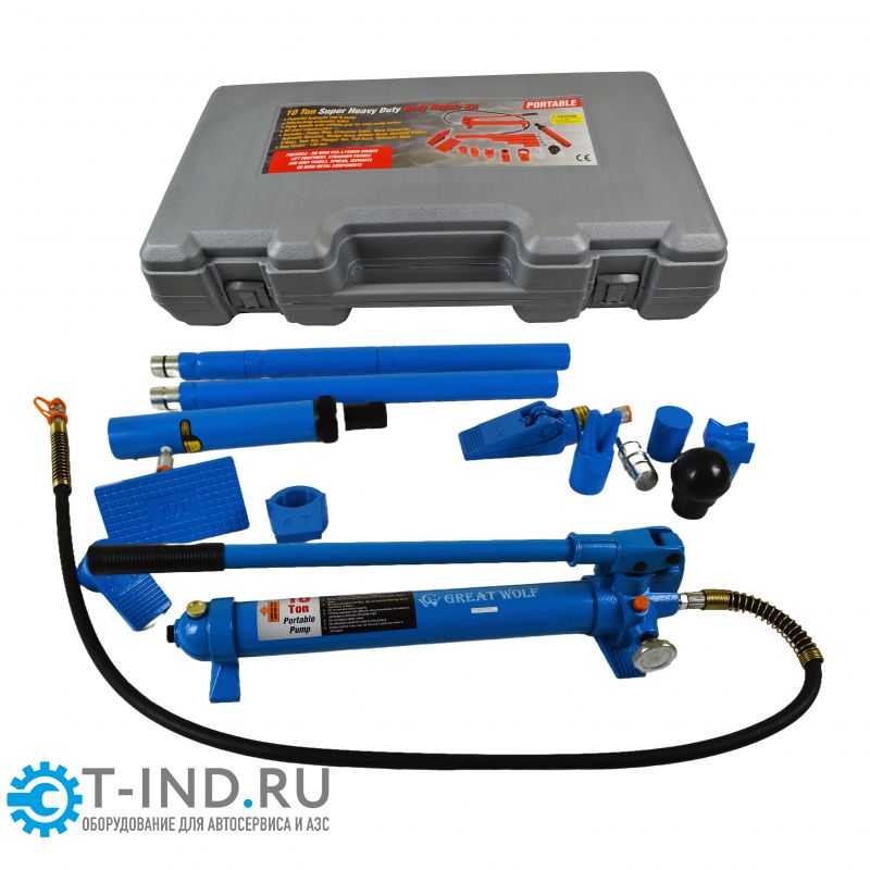 Гидравлическая растяжка Great Wolf 10 тонн GW-0410 с универсальными силовыми приспособлениями применяется для ремонта кузовных элементов легковых автомобилей, грузовиков, сельскохозяйственной и тяжелой техники.