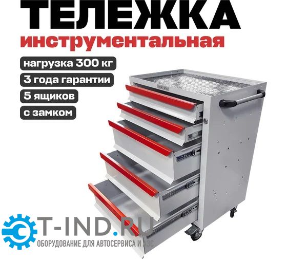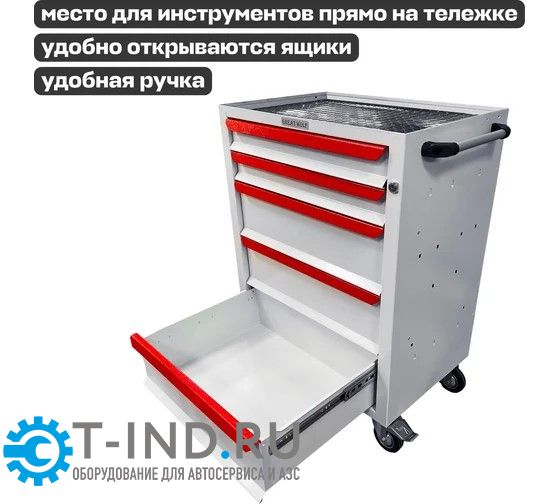Инструментальная тележка Great Wolf GWT-K5W предназначена для удобного хранения и транспортировки инструмента по ремонтной зоне. Увеличенные колеса с блокирующим механизмом надежно фиксируют тележку на месте. Тележка закрывается на ключ. 3 нижних ящика глубиной 155мм и 2 ящика глубиной 75мм позволяют хранить как ложементы, так и крупногабаритный инструмент.