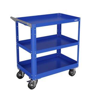 Размер 800х700х450мм. Общая равномерно-распределённая нагрузка на тележку - до 100кг. Корпус выполнен из листовой стали толщиной от 0,6 до 1,5мм., покрыт полимерной порошковой краской. Верхняя и средняя полка имеют высоту борта 40мм., нижняя полка имеет высоту борта 60мм.