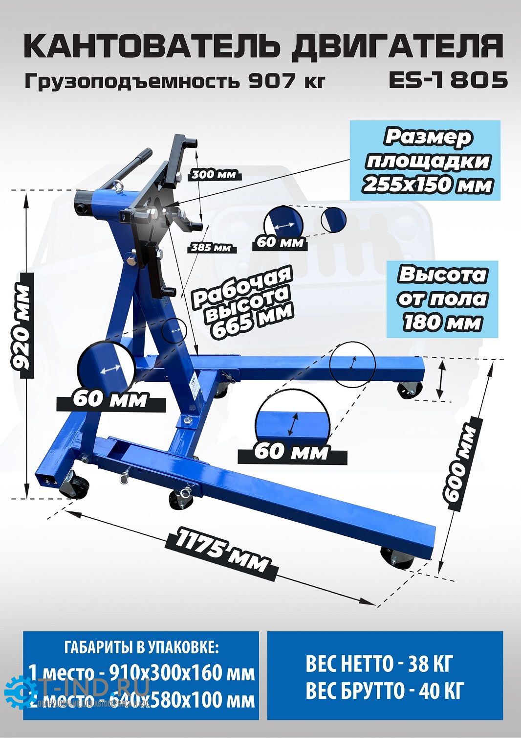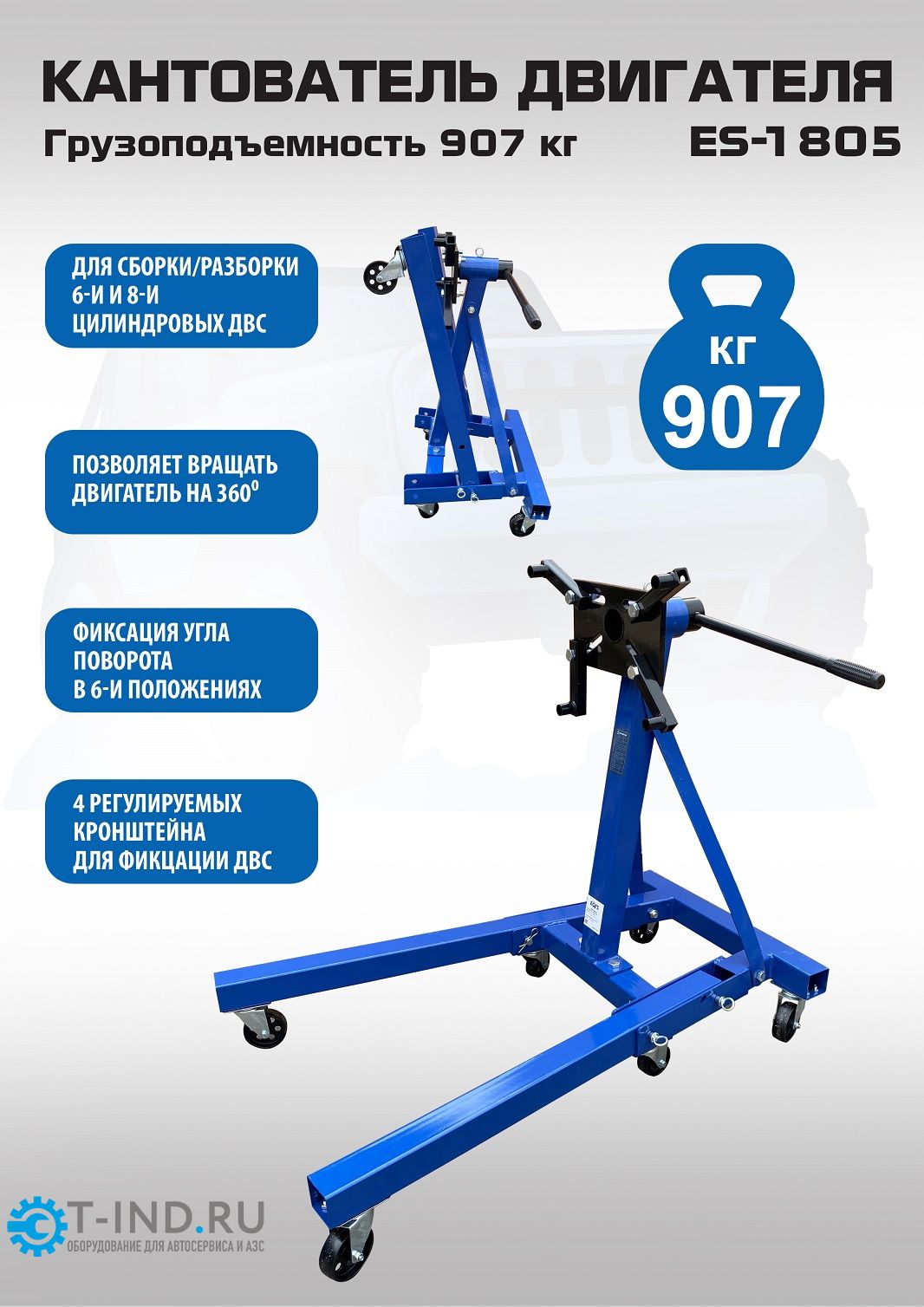 Кантователь двигателя EQFS ES-1805, 907 кг, складной, с редуктором
