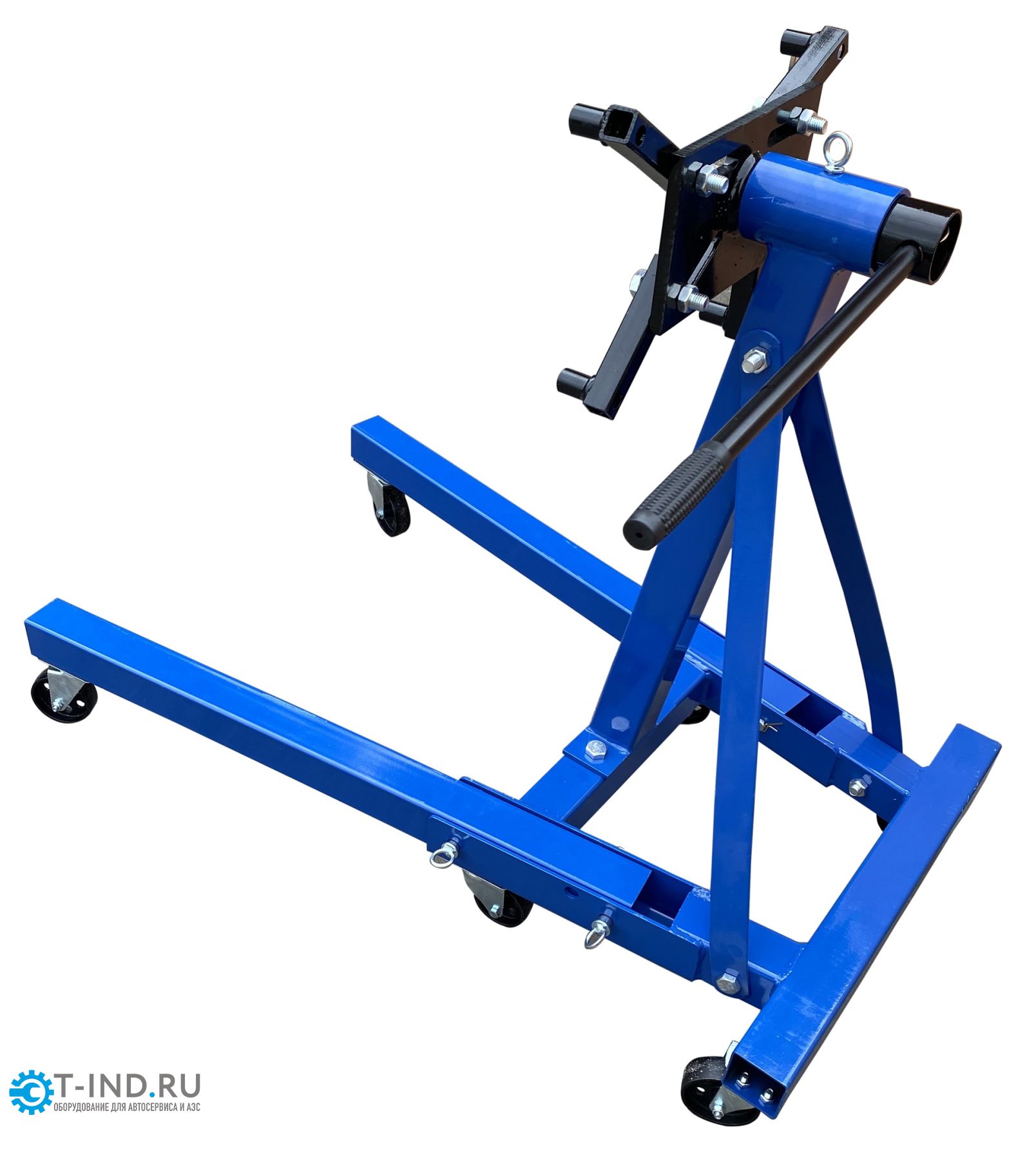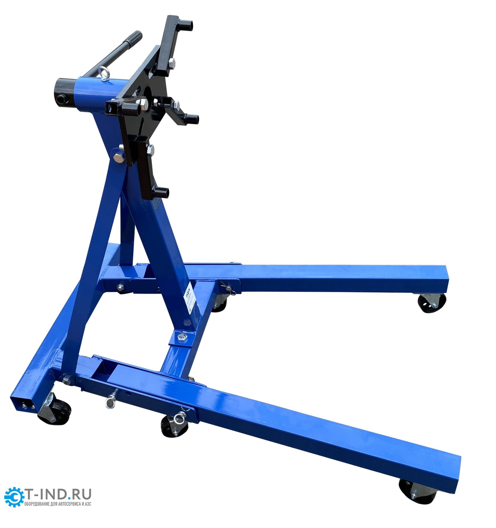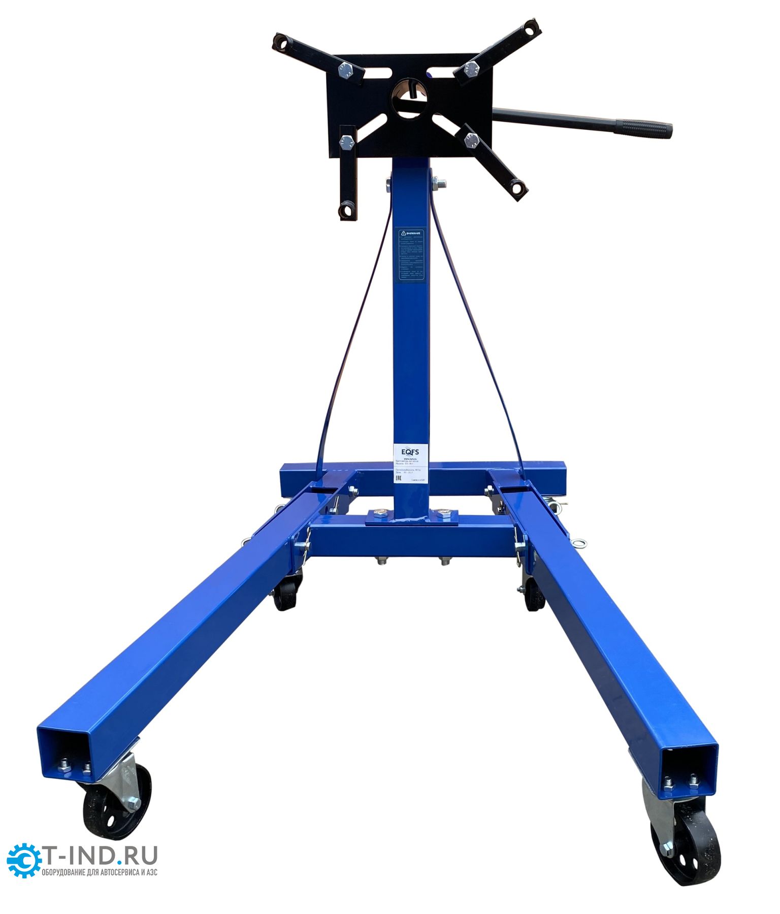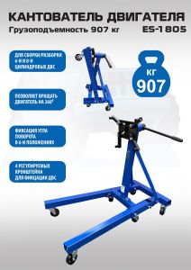 Кантователь двигателя EQFS ES-1805. Складной. Для сборки / разборки цилиндропоршневой группы 6-х цилиндровых ДВС с навесным оборудованием и 8 цилиндровых без навесного оборудования г/п. до 907 кг. Позволяет вращать двигатель на 360°. С 4-мя регулируемыми кронштейнами для удобства вывешивания и обслуживания ДВС легковых авто. Оснащен П - образной рамой с 6 поворотными колесами.