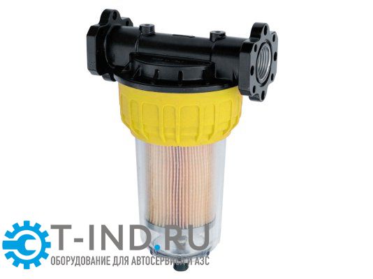Характеризуется несколько меньшей пропускной способностью (70л/мин) и степенью фильтрации (30 мкм), чем аналогичный фильтр без функции водоотделения. Однако вода способна нанести заправляемому оборудованию не меньший вред, чем мелкие абразивные частицы.