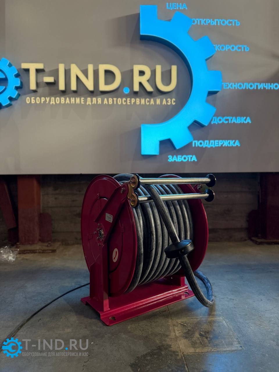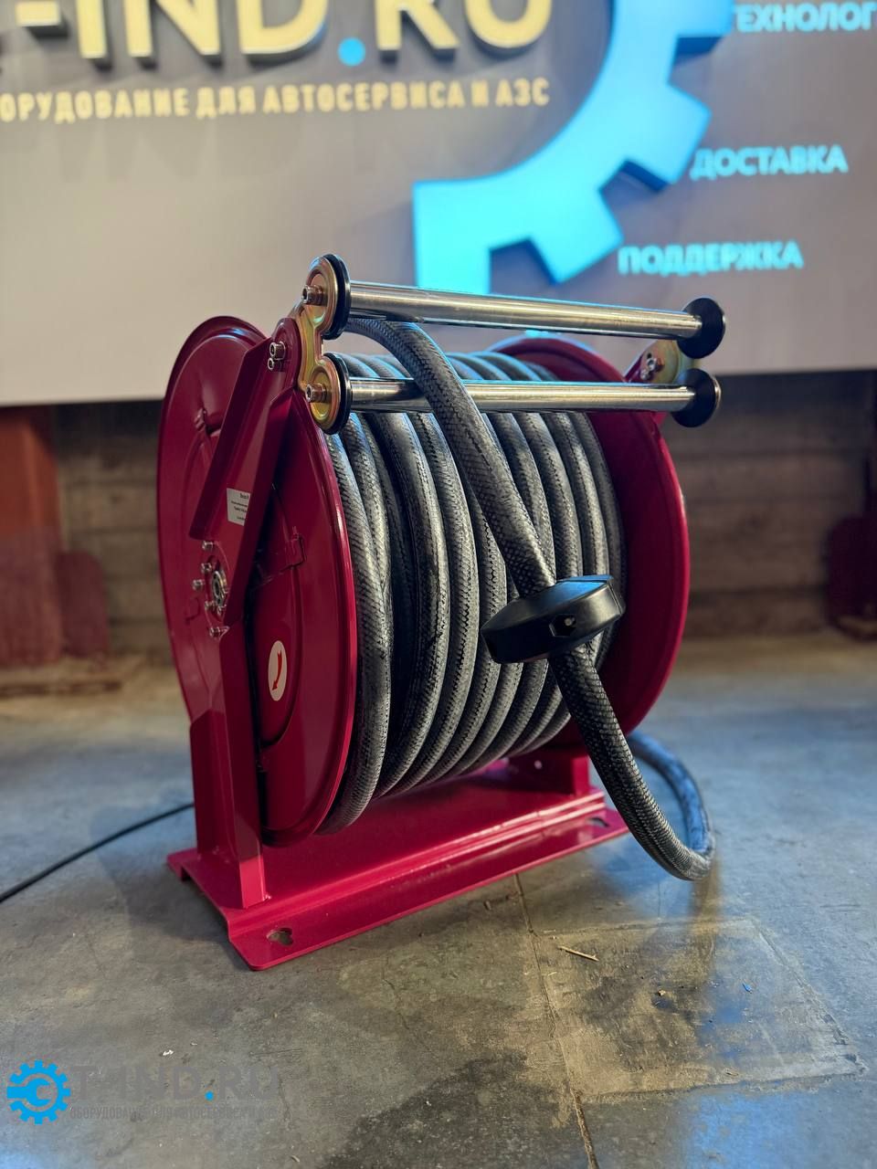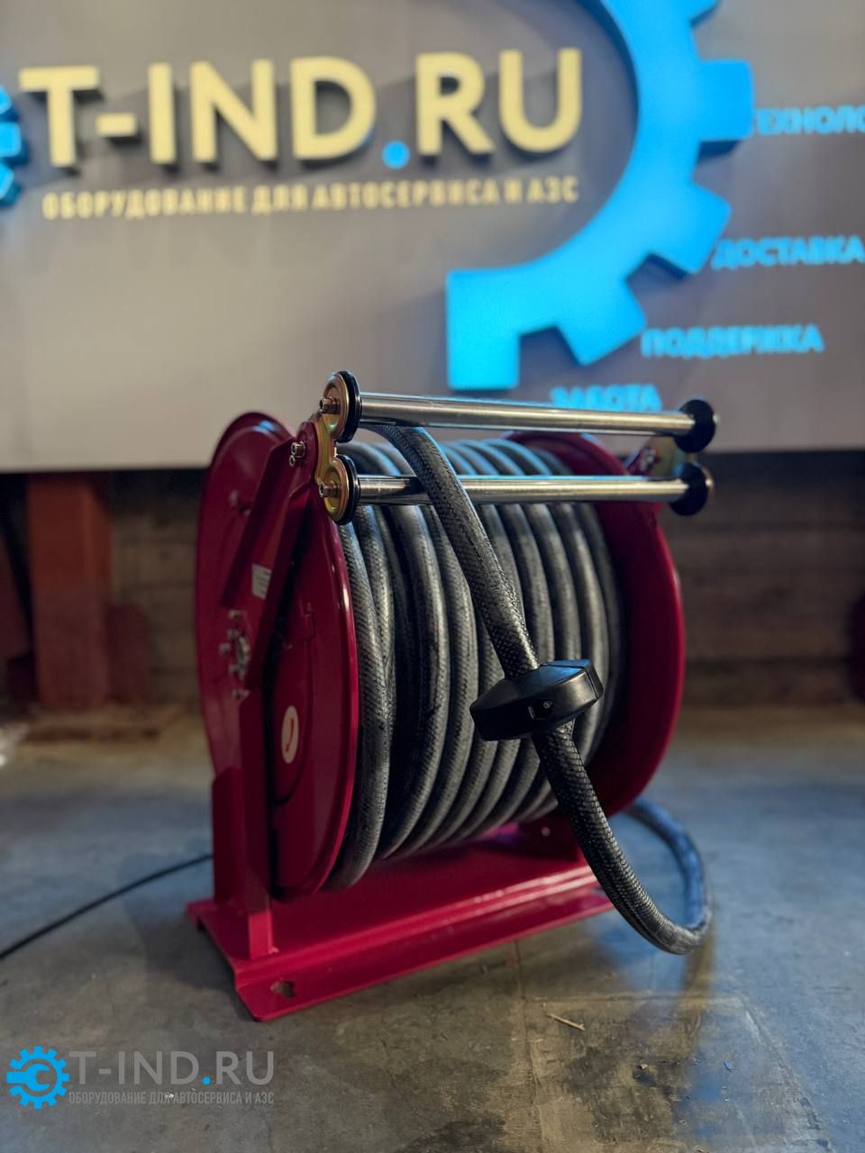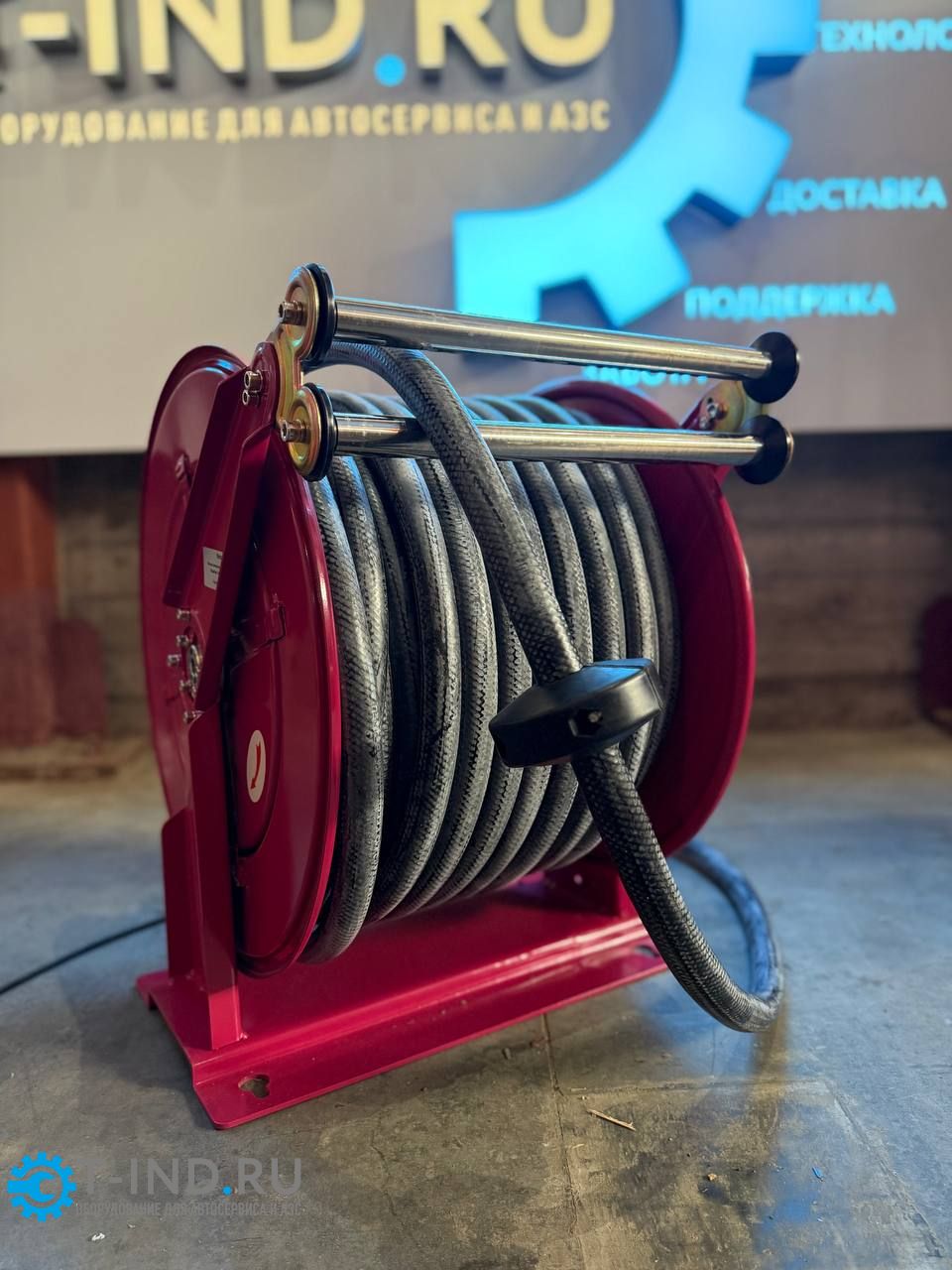 Встроенный механизм автоматического сматывания позволяет обслуживать заправочный комплекс 1 человеку, при этом используется только необходимая длина шланга. Специальный направляющий кронштейн обеспечивает правильную укладку рукава и предупреждает самопроизвольное спадание шланга с барабана.