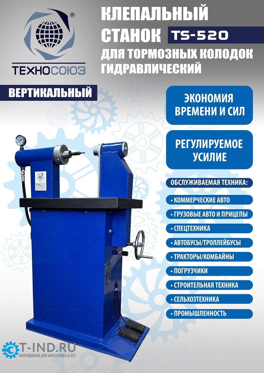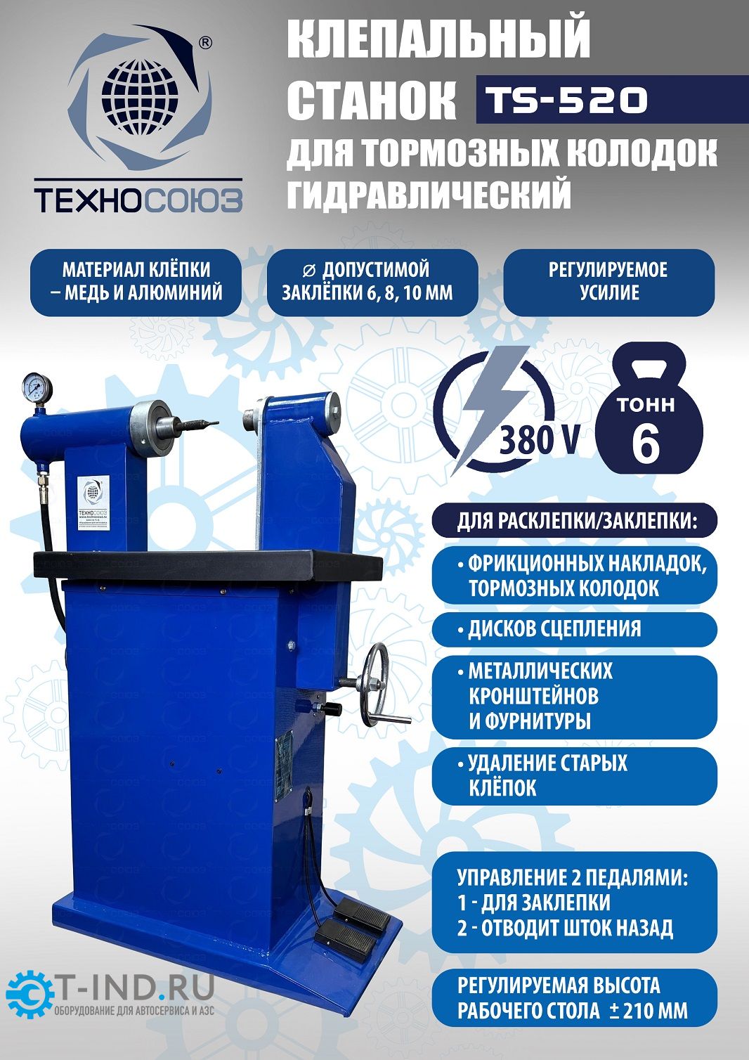 Клепальный станок для тормозных колодок Техносоюз TS-520, 6 тонн, гидравлический