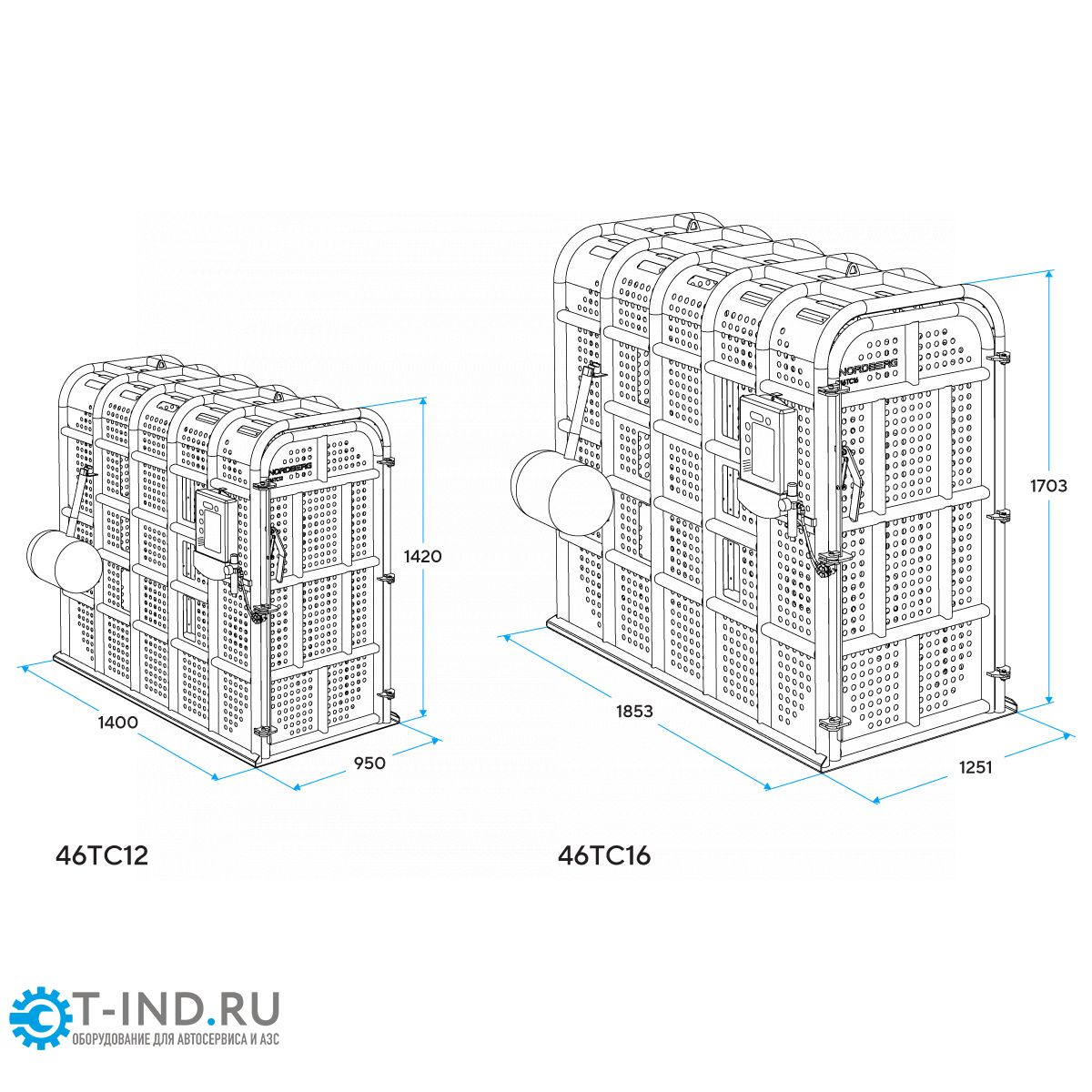 NORDBERG 46TC16 — предназначена для безопасной накачки шин грузовых автомобилей, автобусов, сельскохозяйственной и строительной техники. Основное назначение — защита оператора от травм при возможном взрыве шины в процессе накачивания.