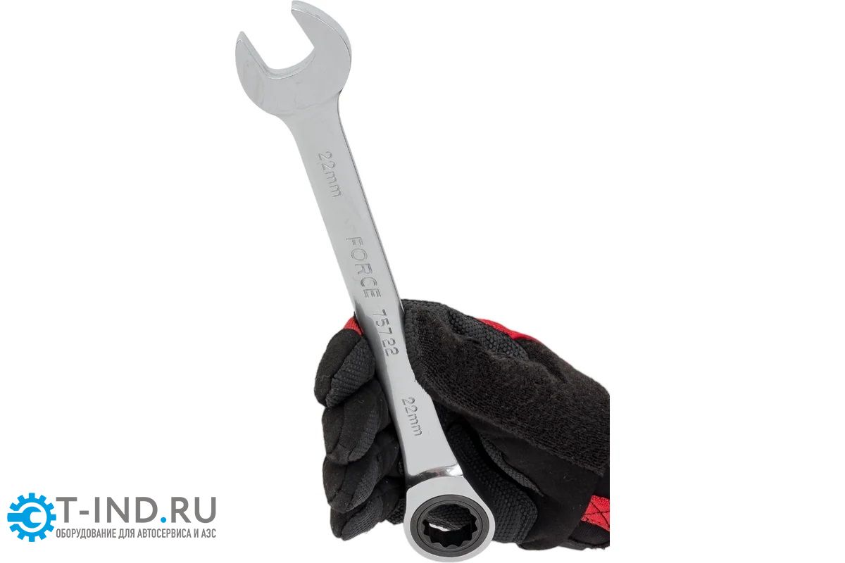Ключ комбинированный FORCE 75722, с трещоточной петлёй 12гран., 22мм, L=290мм