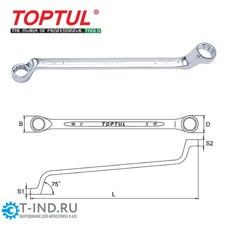 Ключ накидной угол 75° 16х17 мм TOPTUL AAEI1617